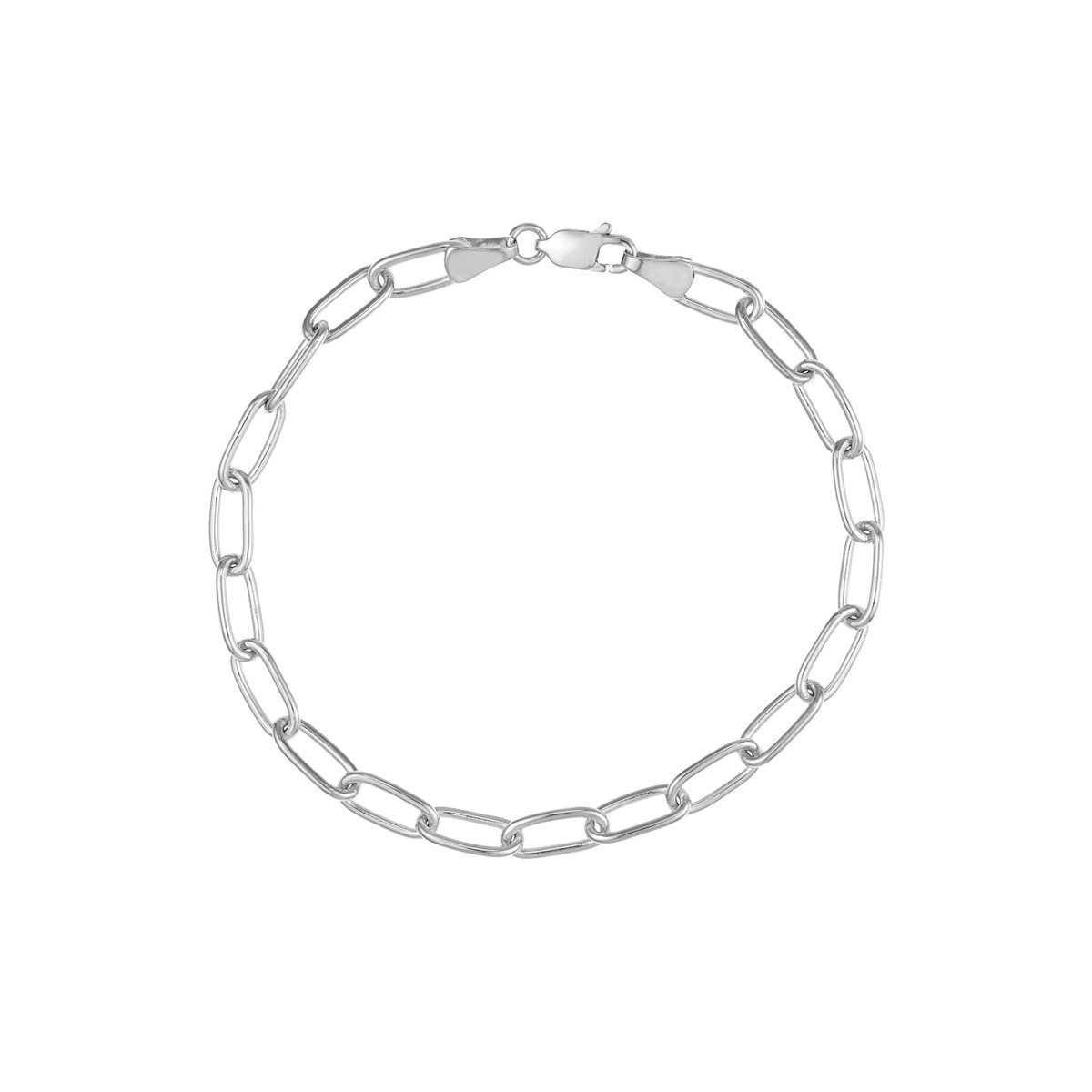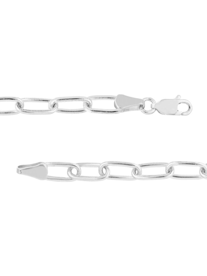 Make a statement with this eye-catching 5mm Paper Clip Chain crafted from lustrous 14K white gold. The classic paperclip design adds a touch of modern elegance, while the sturdy lobster clasp ensures secure wear. Weighing in at a substantial 2.8 grams, this chain is both durable and comfortable. At 7.5 inches, it’s the perfect length to showcase your style.