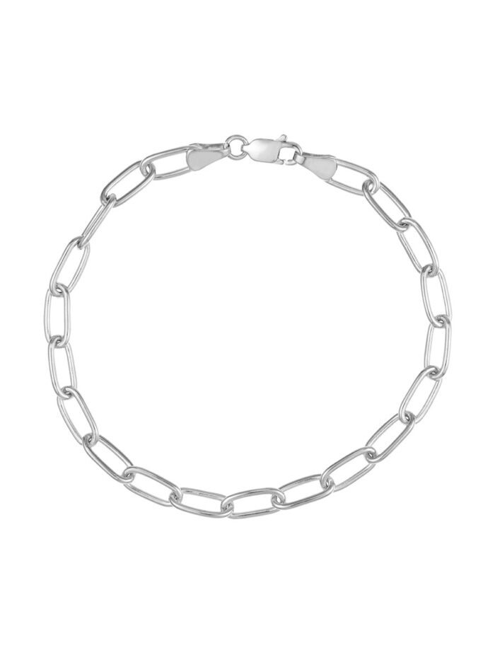 Make a statement with this eye-catching 5mm Paper Clip Chain crafted from lustrous 14K white gold. The classic paperclip design adds a touch of modern elegance, while the sturdy lobster clasp ensures secure wear. Weighing in at a substantial 2.8 grams, this chain is both durable and comfortable. At 7.5 inches, it’s the perfect length to showcase your style.