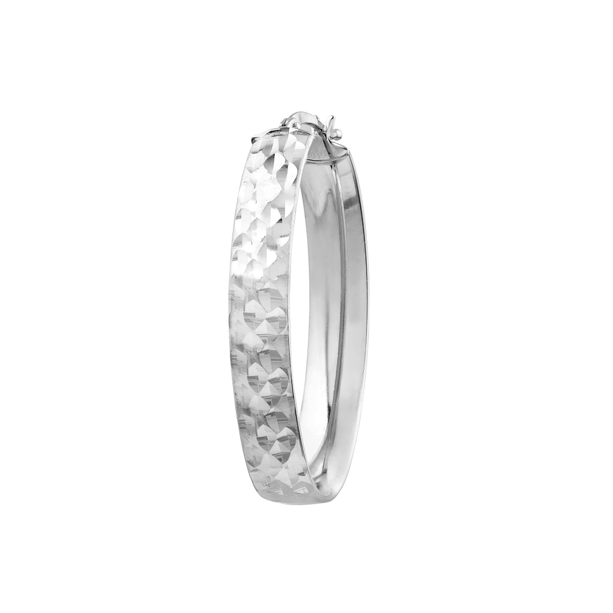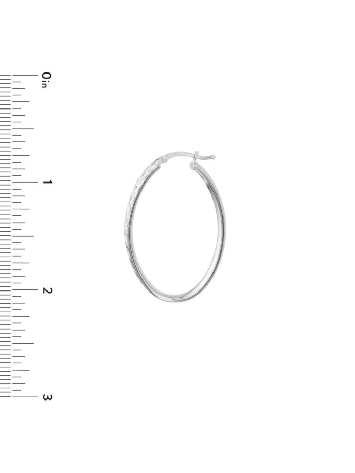 Add a touch of understated elegance to your look with these charming 6mm diamond-cut oval hoop earrings. Crafted from sterling silver and plated in rhodium, these earrings offer a delicate and feminine touch. The diamond-cut design adds subtle sparkle, making them perfect for everyday wear. The rhodium plating ensures durability and a lasting shine, allowing you to enjoy these earrings for years to come.