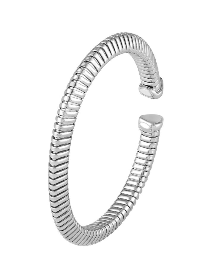 Elevate your style with this exquisite 6mm sterling silver bangle. Inspired by classic Italian craftsmanship, its unique Tubogas design offers a flexible and refined look. Crafted from sterling silver, this bangle is a timeless piece that adds a touch of understated elegance to any ensemble.