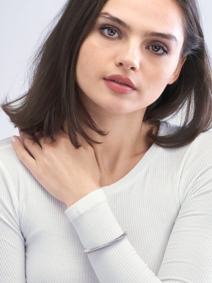 Elevate your style with this exquisite 6mm sterling silver bangle. Inspired by classic Italian craftsmanship, its unique Tubogas design offers a flexible and refined look. Crafted from sterling silver, this bangle is a timeless piece that adds a touch of understated elegance to any ensemble.