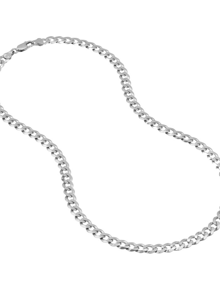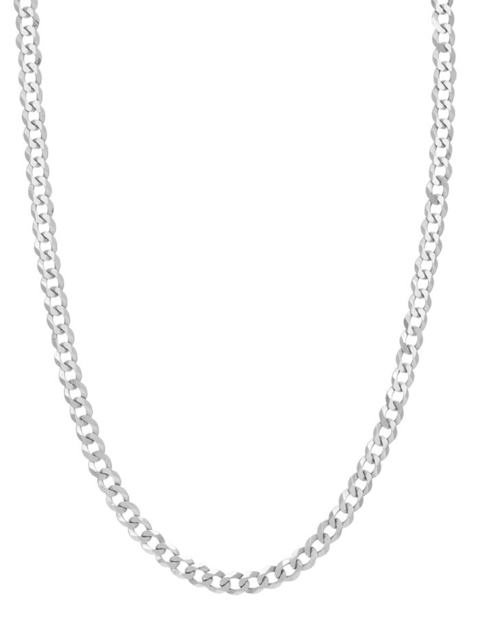 Elevate your everyday style with this striking 7mm Flat Open Cuban Chain crafted from lustrous 14K white gold. This versatile chain, featuring a secure lobster clasp, adds a touch of urban edge to any outfit. Its classic Cuban chain design is known for its strength and timeless appeal. Measuring 20 inches in length, this chain drapes beautifully and complements a variety of looks.