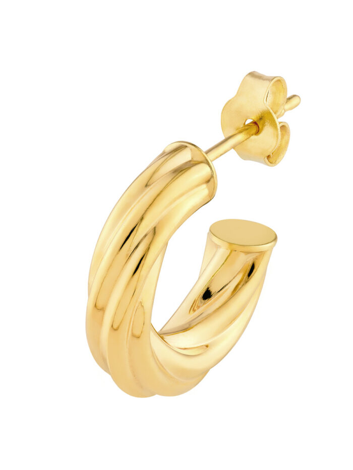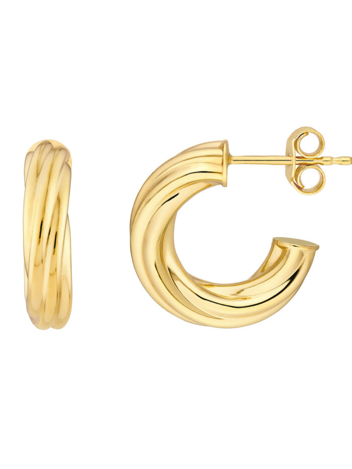 8mm Twisted Open Hoop Earrings – 14K Yellow Gold – by Dazyle