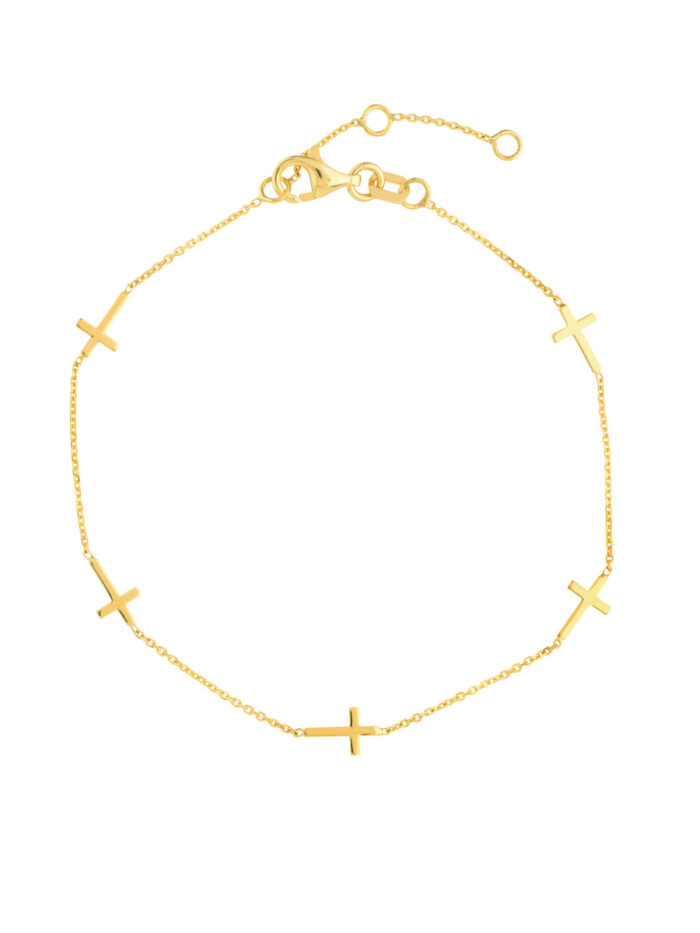 Embrace elegance with our Adjustable Mini Cross Stations Bracelet, crafted from lustrous 14K Yellow Gold. Featuring a delicate chain of mini cross stations, this bracelet adds a touch of divine charm to any ensemble. The comfortable Rolo chain design ensures a secure fit, while the adjustable length allows for a personalized touch.