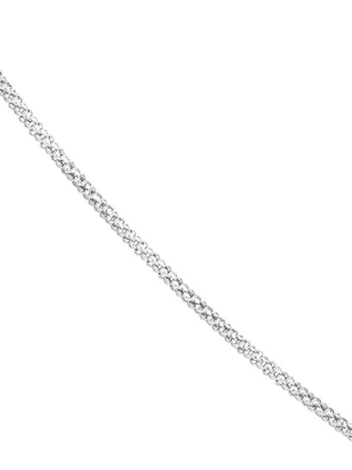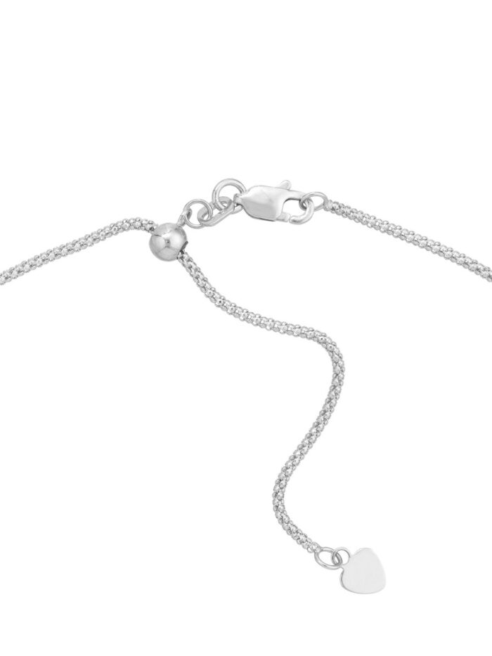Experience effortless style with the Adjustable Popcorn Chain Necklace. This trendy necklace features a delicate popcorn chain design, adding a touch of modern charm to any outfit. The fluid silicone slider bead allows for easy adjustment, ensuring a perfect fit. Crafted from lustrous 14K white gold, this necklace adds a touch of timeless elegance to your look.