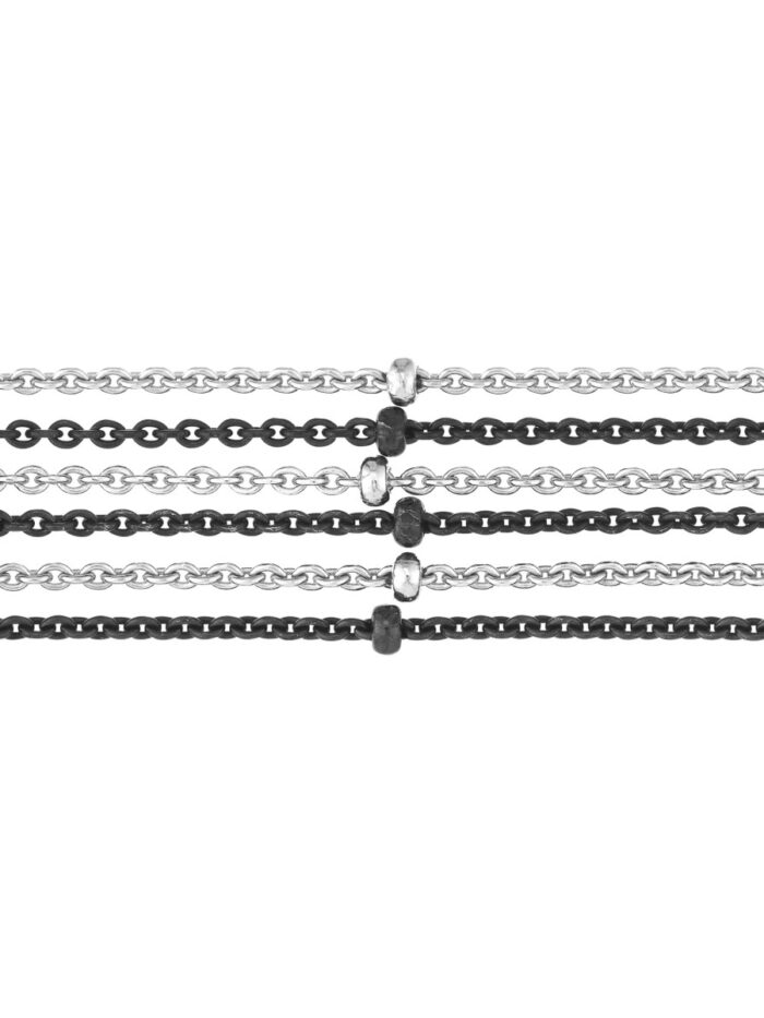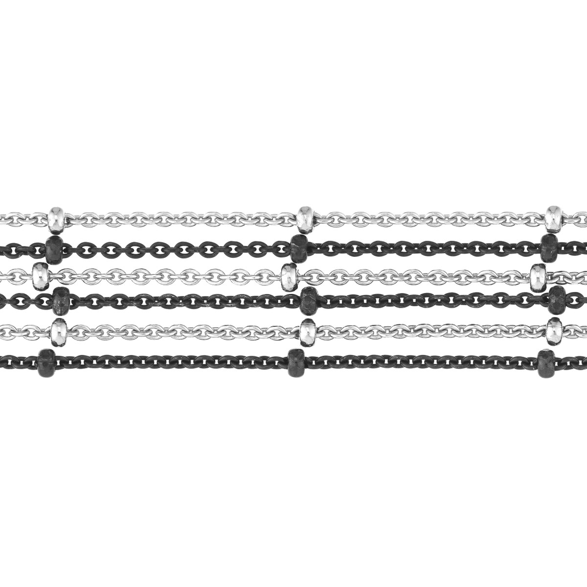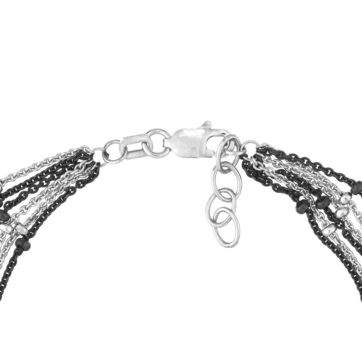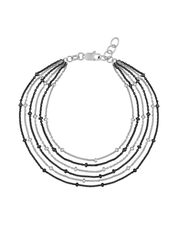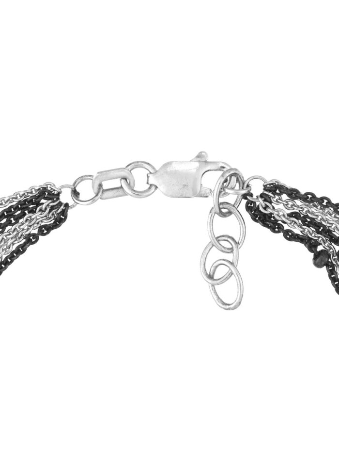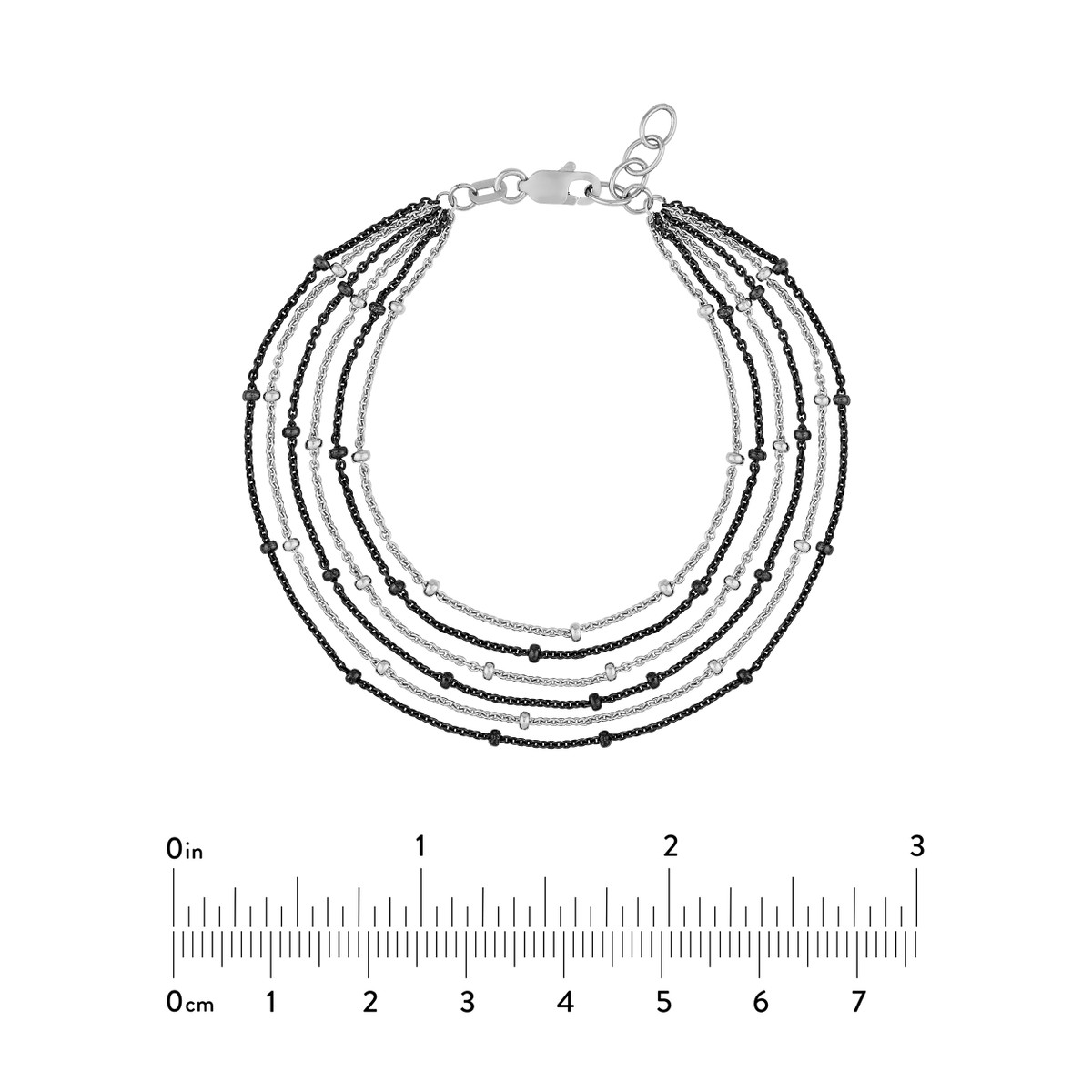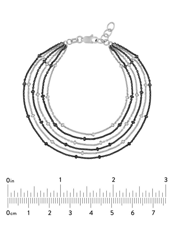 Layer up your wrist with this bold and stylish sterling silver saturn chain bracelet. Featuring a unique multi-strand design with black and sterling silver accents, it adds a touch of modern edge to any outfit. The adjustable closure allows for a personalized fit, making it perfect for stacking or wearing alone.