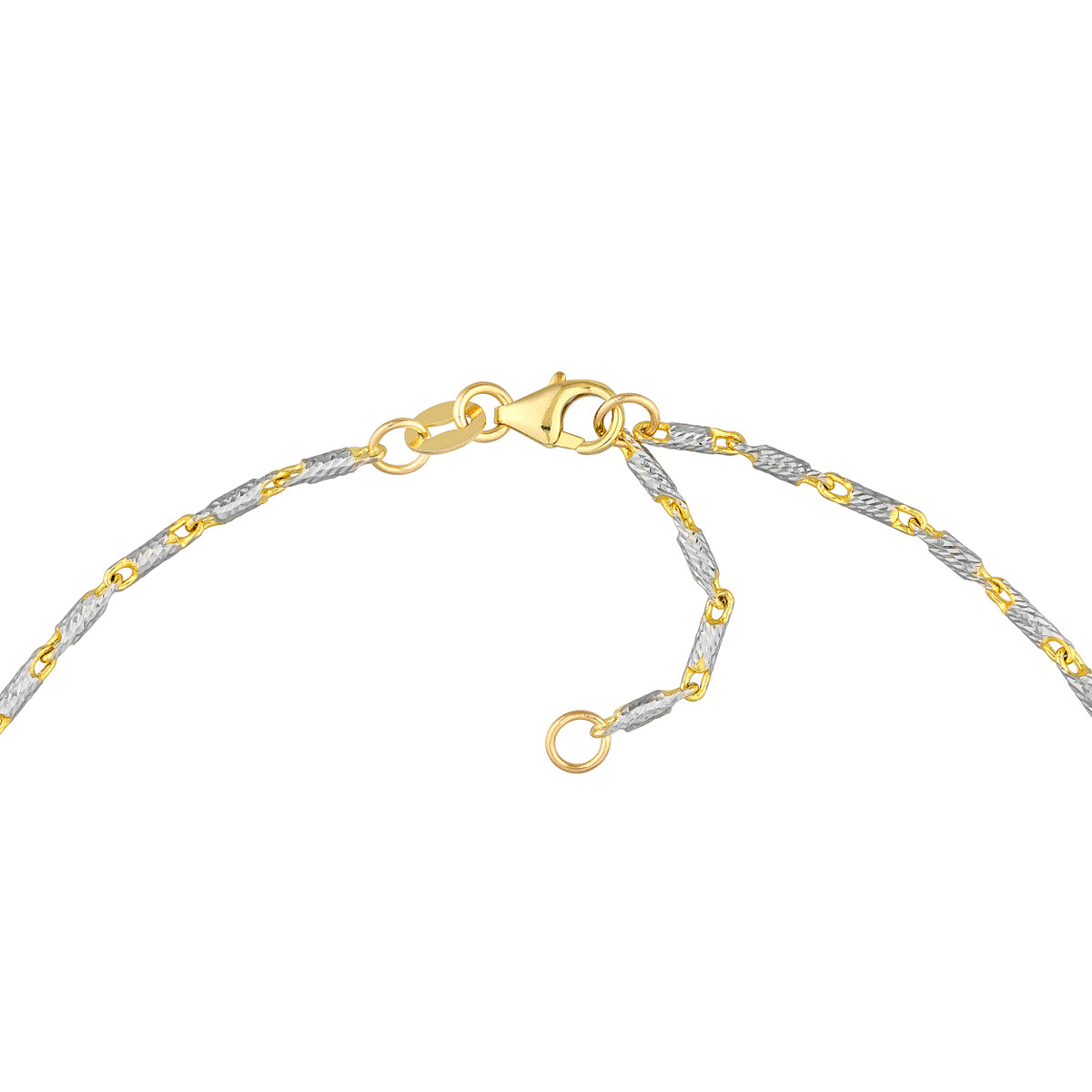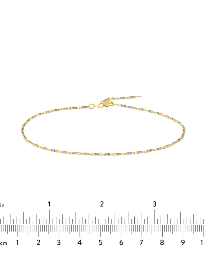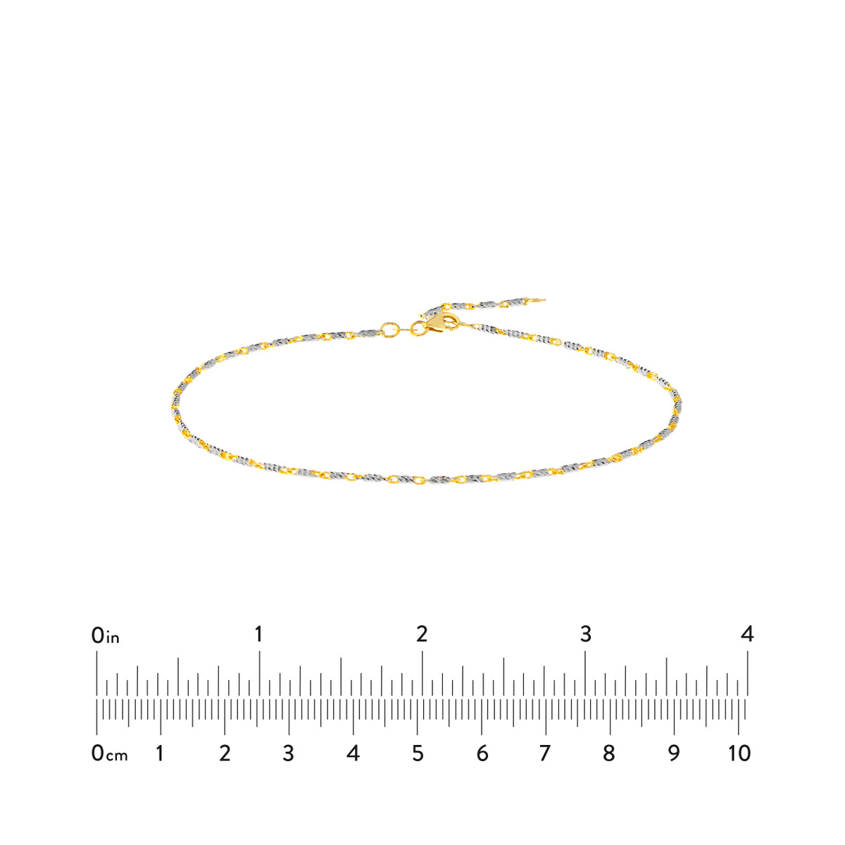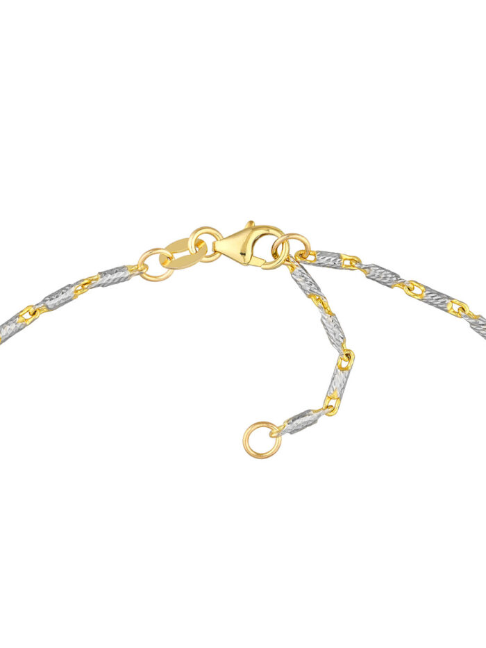Step out in style with the Adjustable Two-Tone Lumacina Anklet. This beautiful anklet is meticulously crafted from 14K yellow and white gold, featuring a delicate cable chain design adorned with shimmering Lumacina accents. The adjustable length, ranging from 9 to 10 inches, ensures a comfortable and personalized fit for any ankle. It’s the perfect way to add a touch of glamour to any summer outfit.