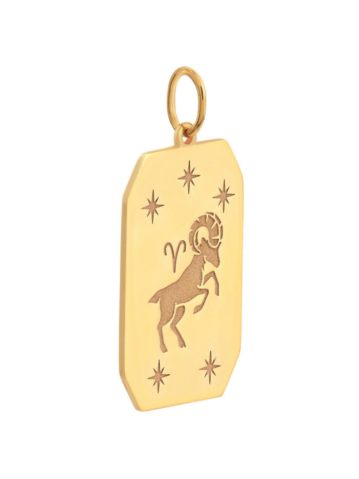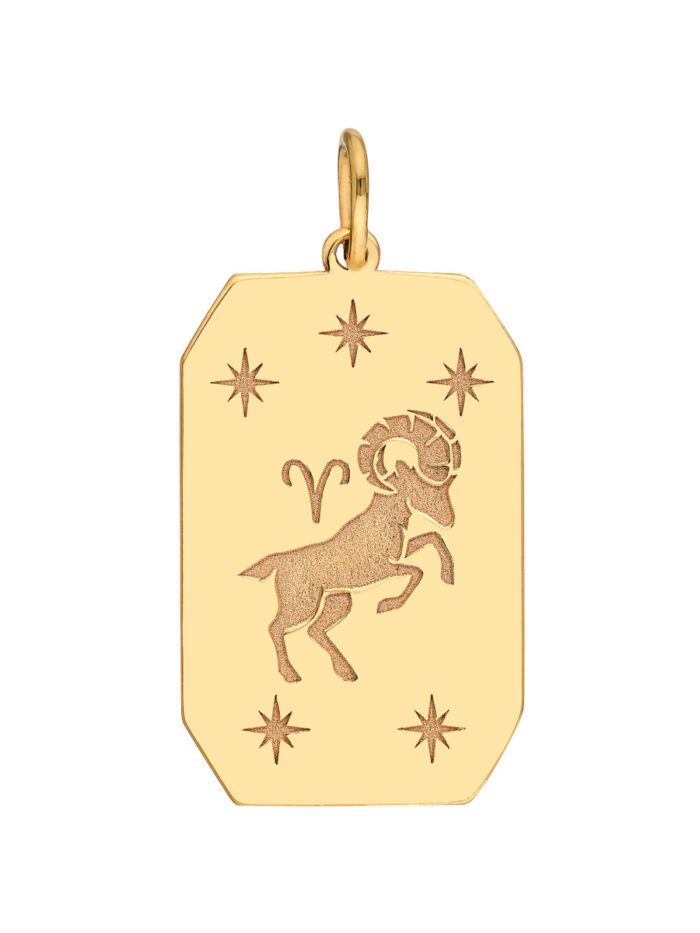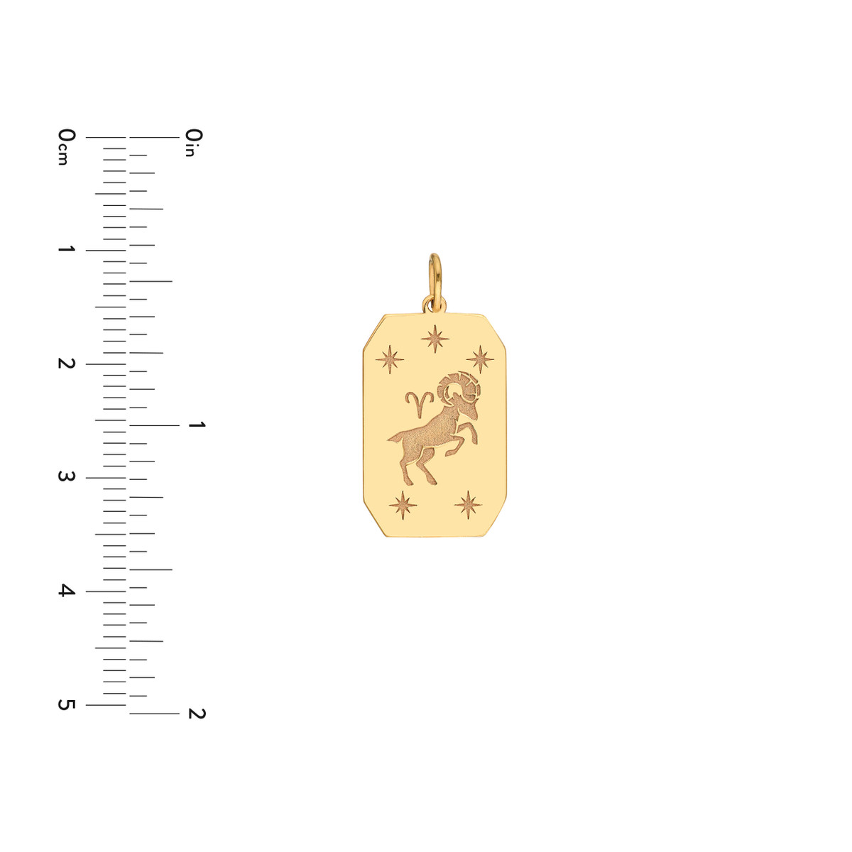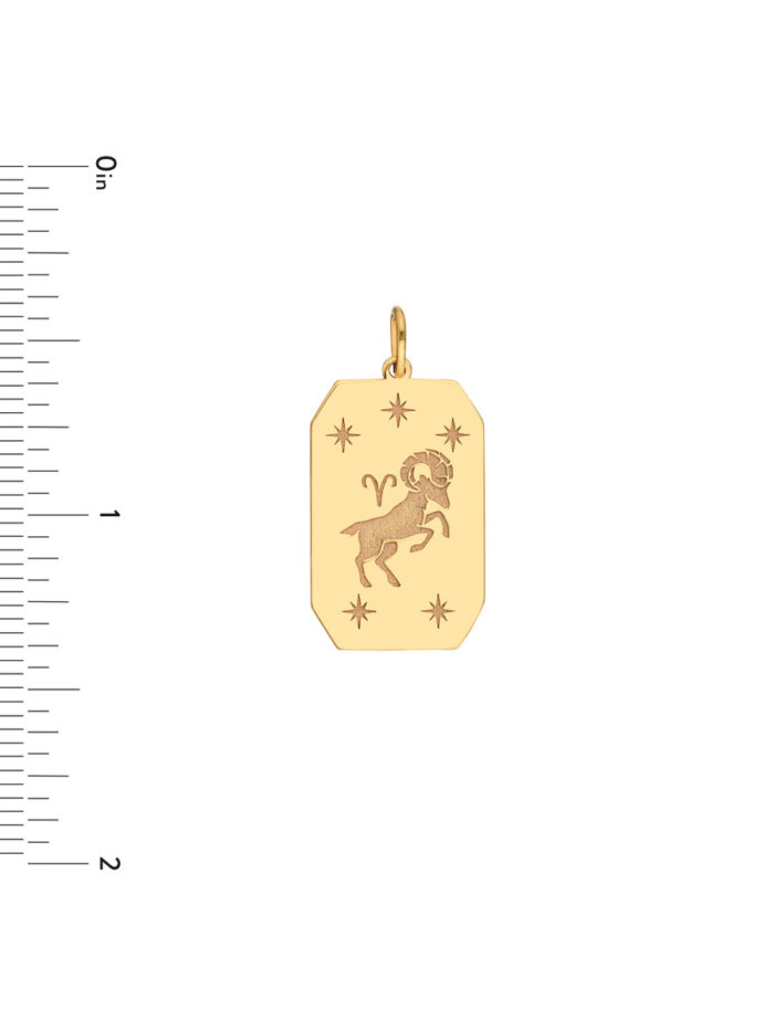 Express your astrological identity with our Aries Engraved Pendant. Crafted from 14K yellow gold, this pendant features a detailed engraving of the Aries zodiac sign, symbolizing confidence, determination, and independence. The jump ring closure allows for easy attachment to your favorite chain.