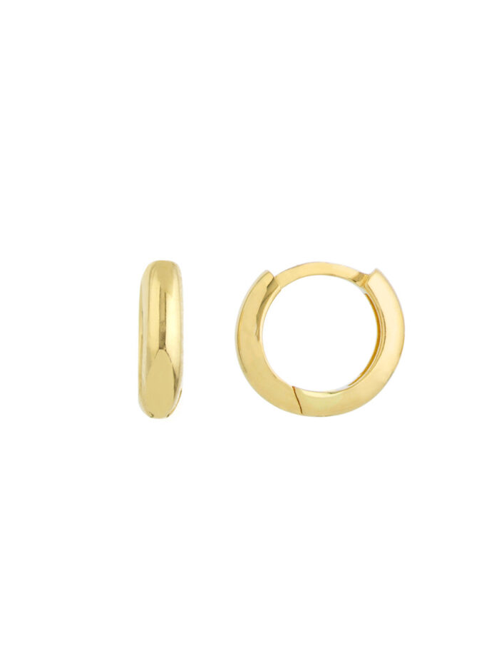 These dainty baby hoops are the perfect way to add a touch of understated elegance to your look. Crafted from 14K yellow gold and measuring 2.15mm x 9.25mm, they feature a secure snap-lock clasp for comfortable wear.