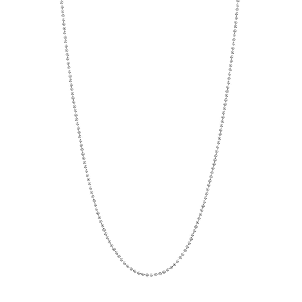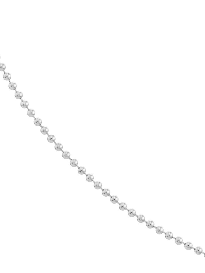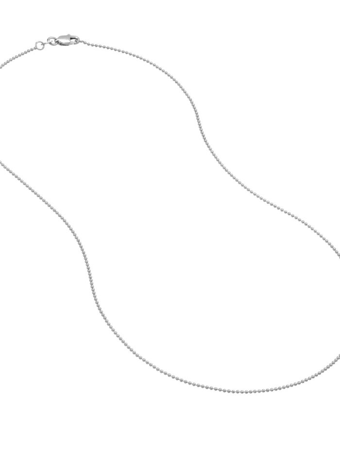 The Bead Chain is a classic and timeless piece that will elevate any outfit. Crafted from 14K white gold, this delicate chain features small, evenly spaced beads that create a beautiful shimmer. Secured with a lobster lock closure for ease of wear, this 1mm wide chain measures 16 inches in length, making it perfect for layering or wearing solo.