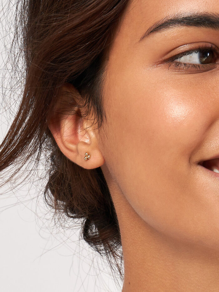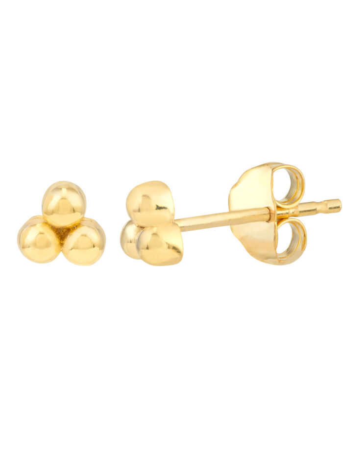 The Dazyle Bead Trinity Stud Earrings are a perfect blend of simplicity and style. Crafted in 14K yellow gold, these dainty studs feature three beautifully arranged beads, creating a charming and timeless look. The secure post & nut closure ensures comfortable wear throughout the day. These versatile earrings effortlessly elevate any outfit, making them a must-have for every jewelry lover.