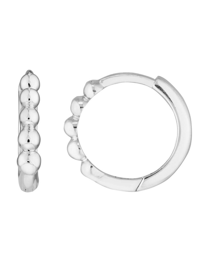 Elevate your everyday look with these stunning Beaded Mini Huggie Earrings crafted from lustrous 14K white gold. Their delicate beaded design adds a touch of timeless elegance, while the secure hinge closure ensures comfortable wear. These hoops are effortlessly stylish, perfect for adding a subtle sparkle to any outfit.