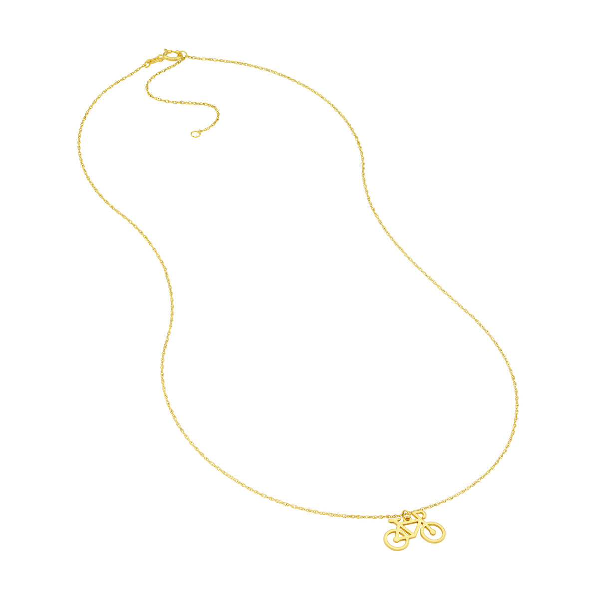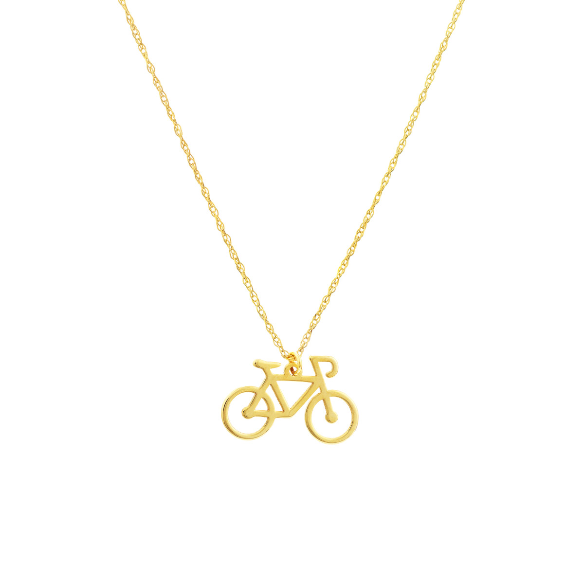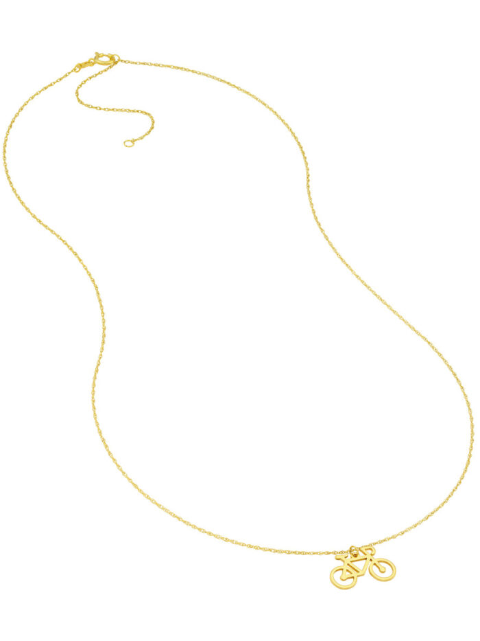 Embrace your playful side with the Bicycle Pendant Necklace from our So You collection. Crafted in 14K yellow gold, this charming necklace features a whimsical bicycle pendant, a symbol of freedom and adventure. Adjustable from 16 to 18 inches, it offers a perfect fit for everyday wear. The classic rope chain adds a touch of sophistication, making this necklace a unique and delightful addition to your jewelry collection.