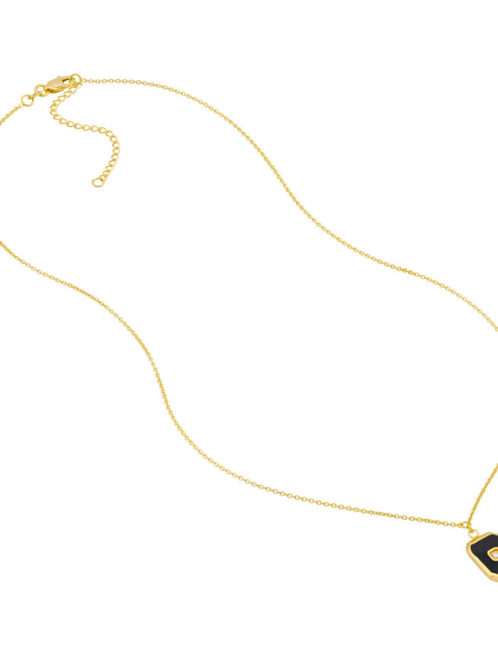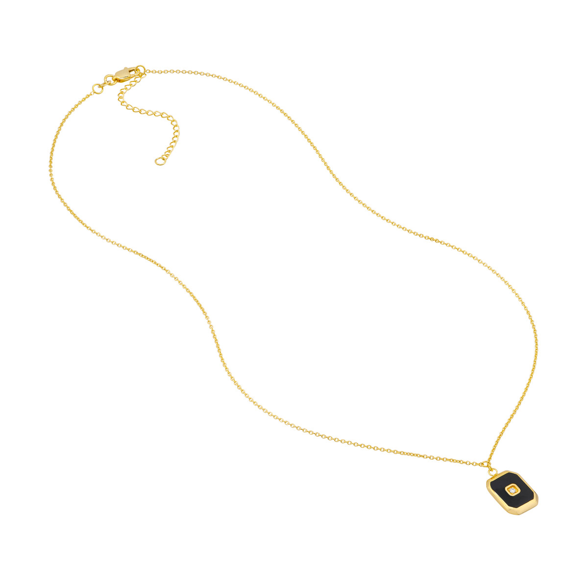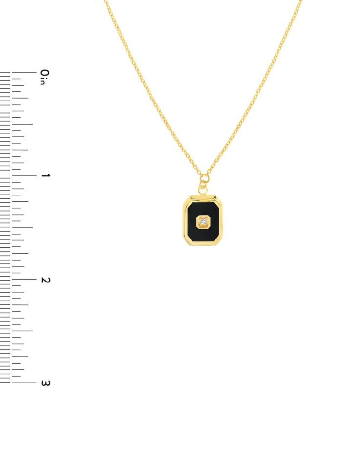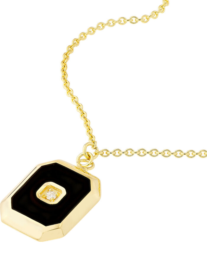 Elevate your style with the timeless elegance of our black enamel octagon medallion necklace. Crafted in lustrous 14K yellow gold, this piece features a captivating octagon design adorned with a striking black enamel finish. The centerpiece is a sparkling 1.5pt diamond, adding a touch of brilliance to this already stunning necklace. With a secure lobster closure and an 18-inch length, this necklace is designed to make a lasting impression.