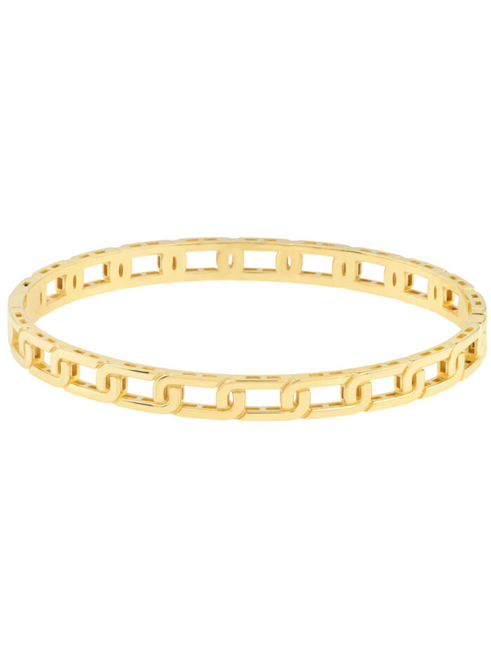 Embrace timeless elegance with our 14K Yellow Gold Link Chain Bangle. This bold, statement piece is crafted with a classic link chain design, perfect for adding a touch of sophistication to any outfit. Its lustrous gold finish adds a warm glow, making it a versatile accessory for both casual and dressy occasions.