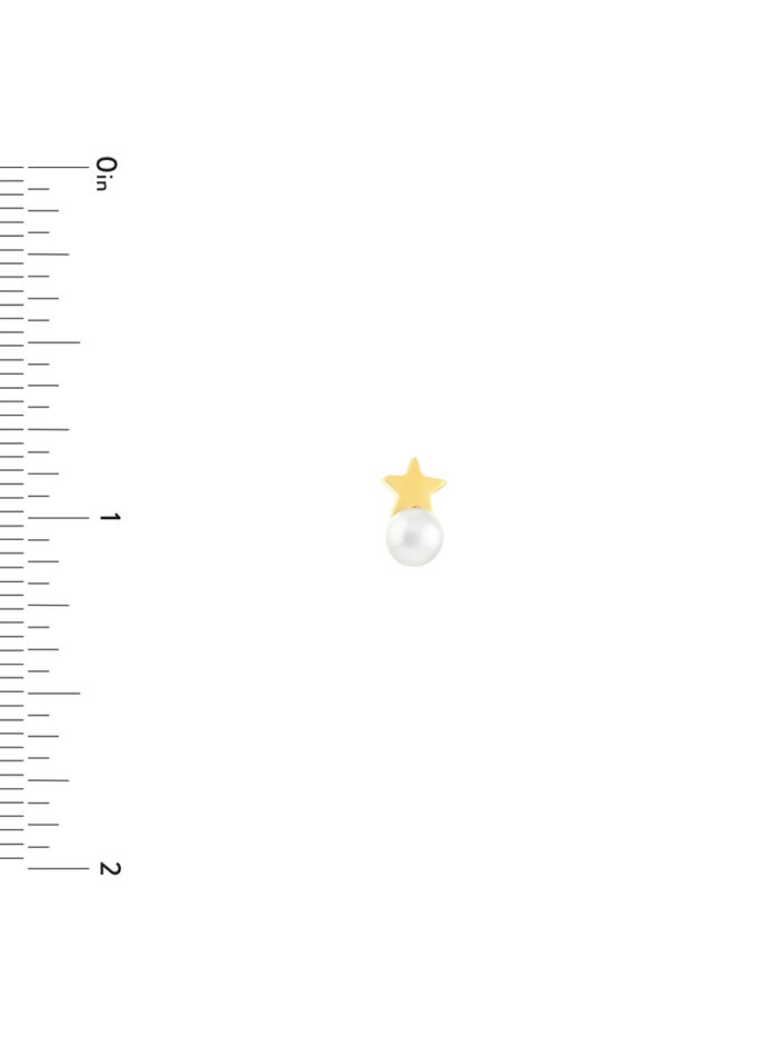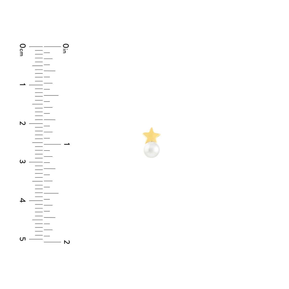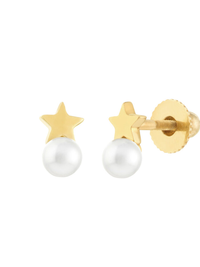 These adorable star and pearl stud earrings are the perfect starter pair for any child. Crafted from 14K yellow gold, they feature a charming star design with a sparkling 4mm pearl accent. The screw back closure ensures a secure and comfortable fit.