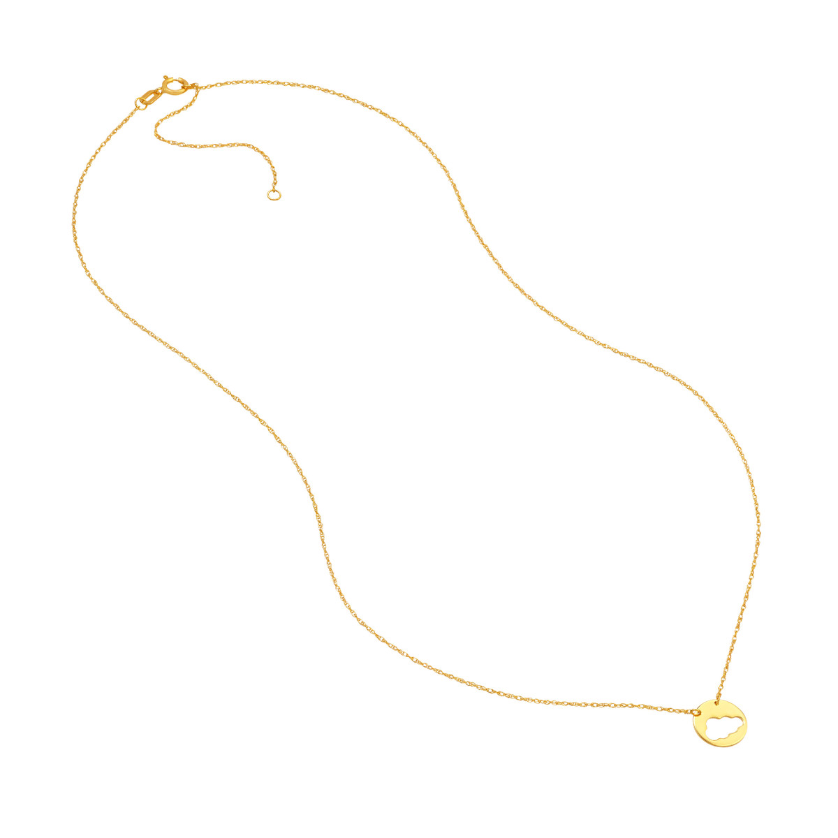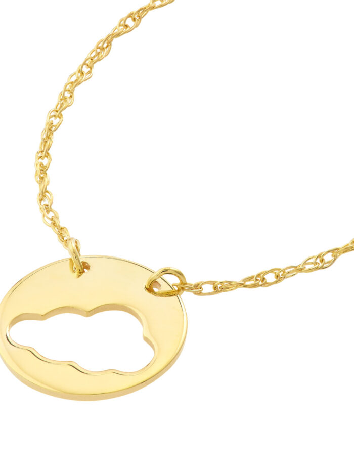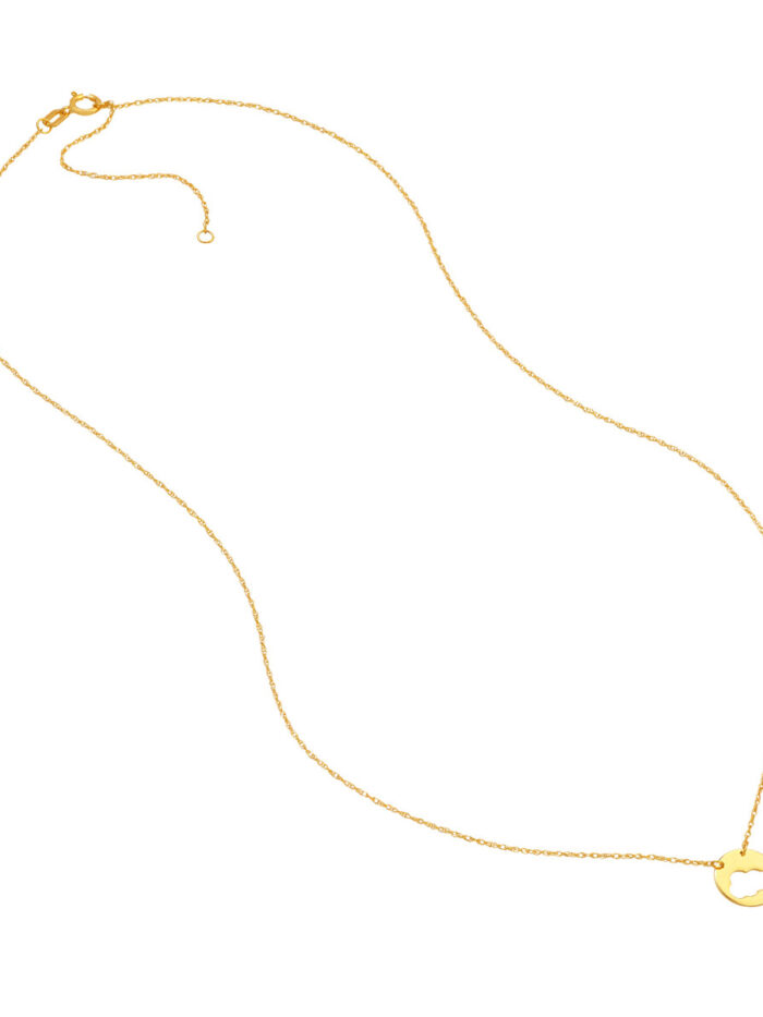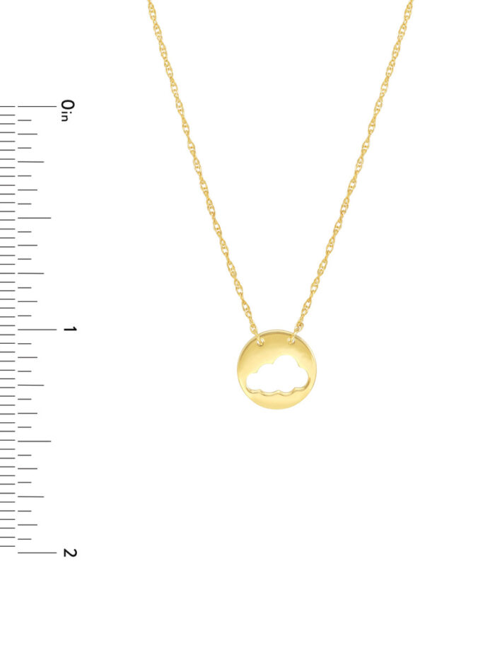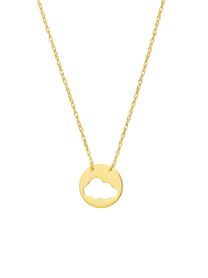 Embrace your airy side with the Cloud Cut Out Disc Necklace from Dazyle’s So You collection. This 14K yellow gold necklace features a delicate cloud cutout disc pendant, adding a touch of ethereal charm to any ensemble. The adjustable chain allows for a personalized fit, ranging from 16 to 18 inches. Crafted with high-quality materials, this necklace is designed to be a cherished piece in your jewelry collection.