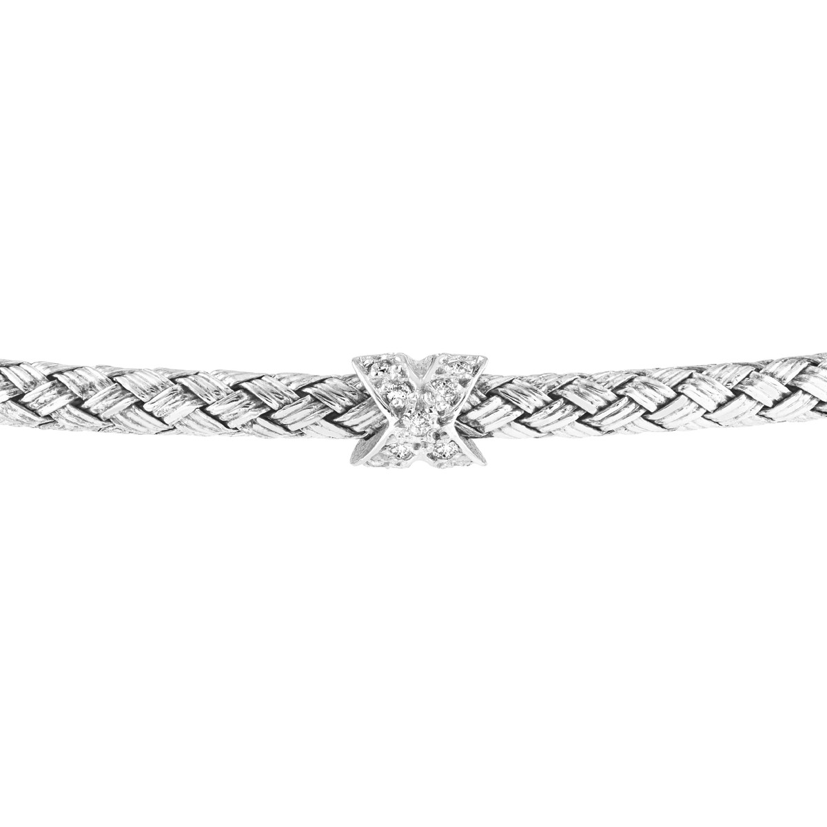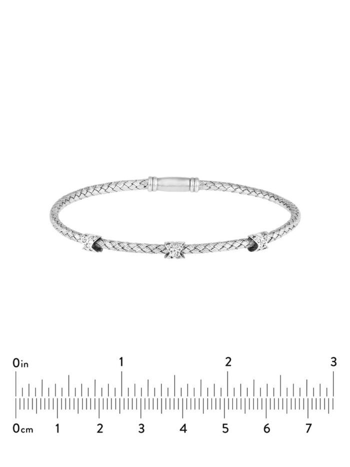 Add a touch of timeless elegance to your wrist with this stunning cross-cross diamond mesh bangle. Crafted from high-quality sterling silver, this bangle features a delicate mesh design adorned with sparkling diamonds in a unique cross-cross pattern. The lobster closure ensures a secure fit, while the 7.25-inch length allows for a comfortable and flattering wear.
