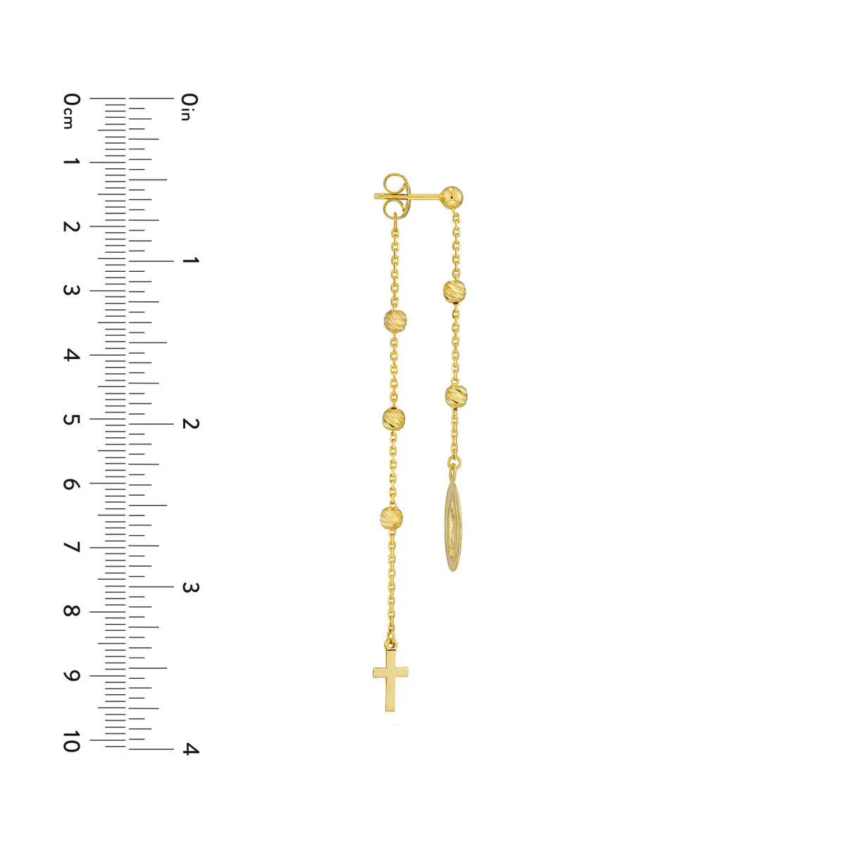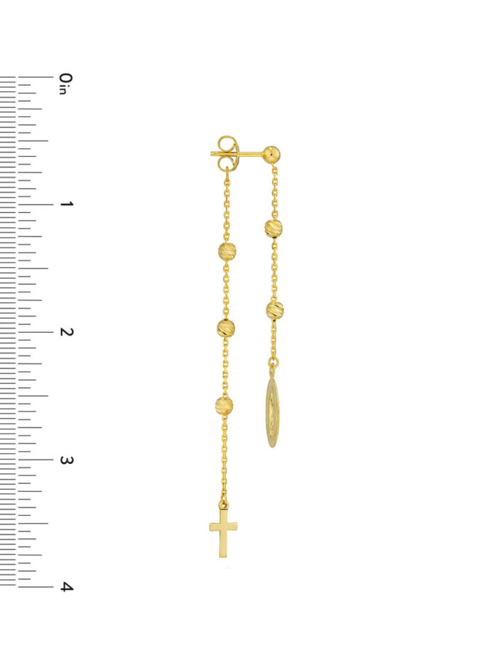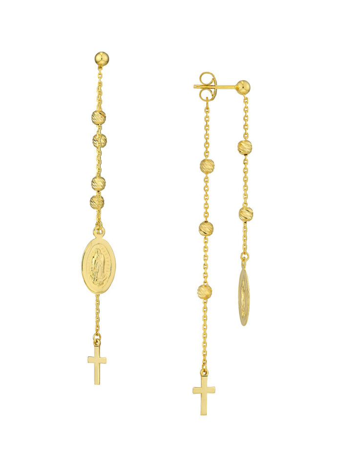Embrace your faith with these elegant Cross and Virgin Mary Dangle Earrings. Crafted from lustrous 14K yellow gold, these earrings feature a classic design that is both timeless and meaningful. The intricate detailing adds a touch of sophistication, making them perfect for everyday wear or special occasions.