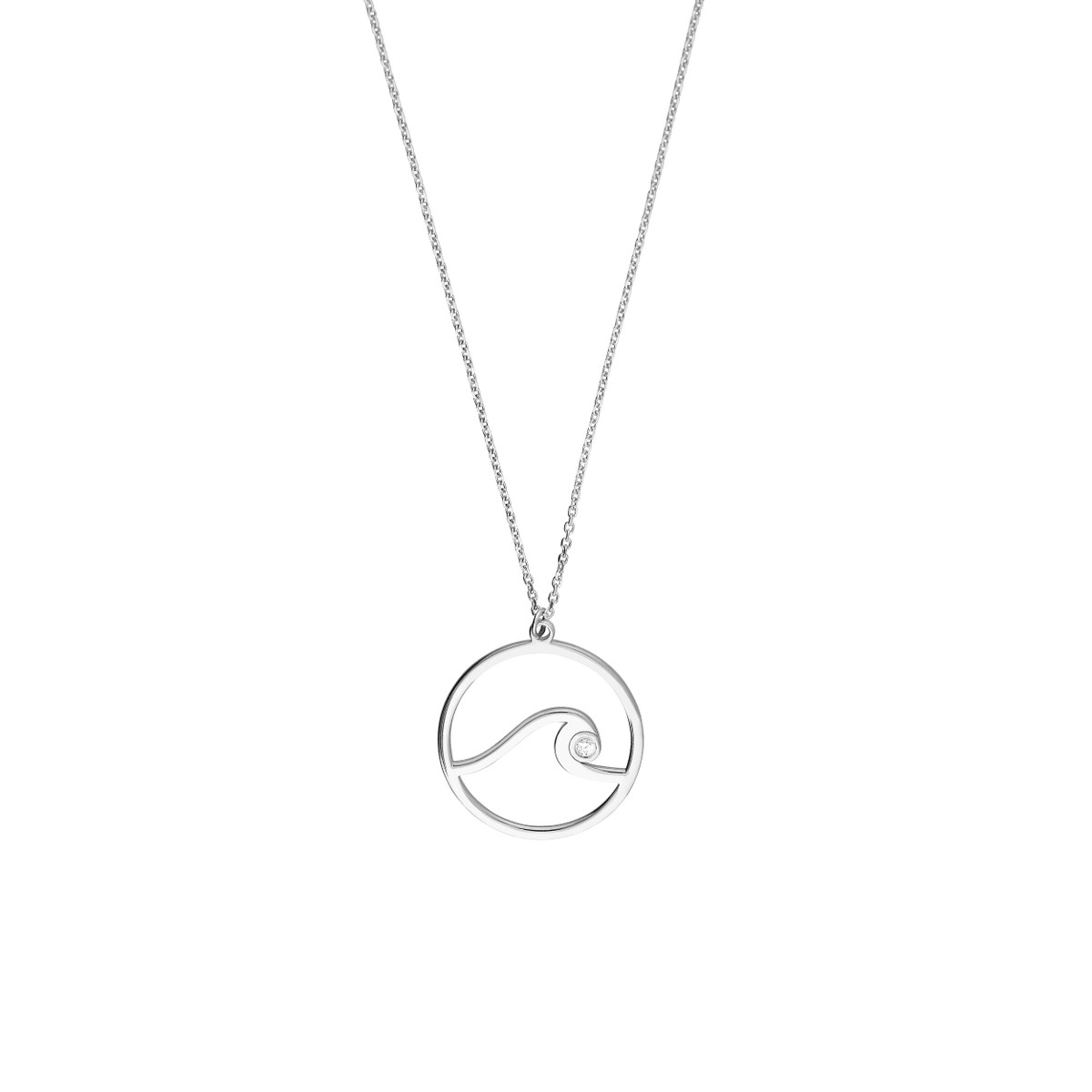 Channel your love for the sea with our CZ Wave in Circle Cable Necklace. Crafted in rhodium-plated sterling silver, this necklace features a delicate wave design adorned with sparkling cubic zirconia stones. The cable chain offers a classic and versatile look, while the adjustable length ensures a comfortable fit, ranging from 16 to 18 inches. Whether you’re adding a touch of sparkle to your everyday style or seeking a meaningful gift for a loved one, this necklace is sure to make a statement.