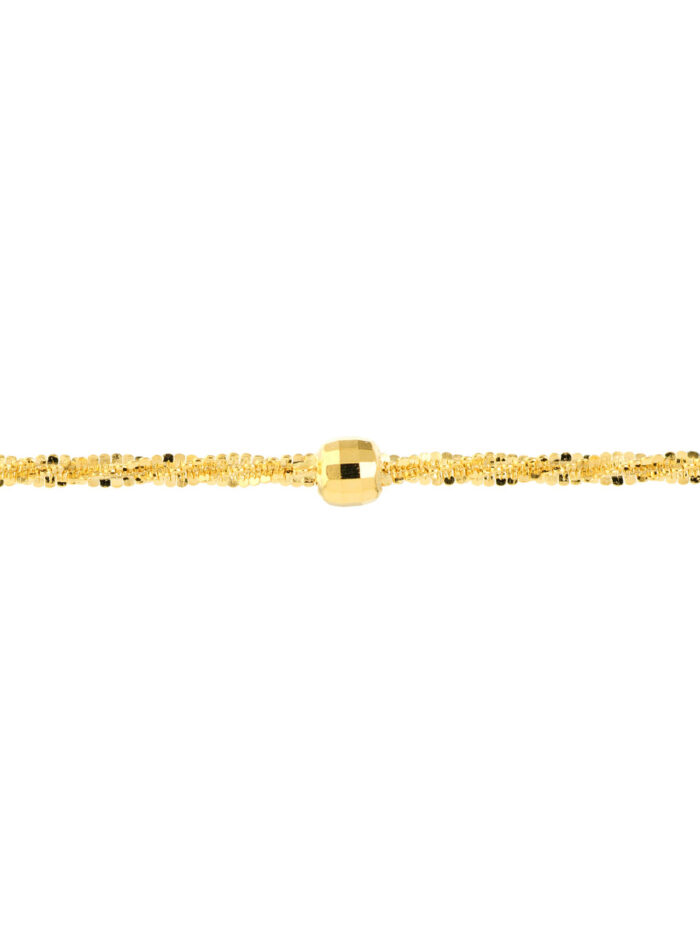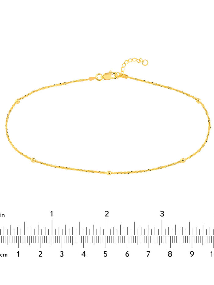 Add a touch of sparkle and style to your summer look with this eye-catching anklet. Featuring diamond-cut beads delicately strung on a classic Axis Chain, this piece exudes both elegance and playfulness. The adjustable length (9-10 inches) ensures a comfortable and secure fit for any ankle. Crafted from lustrous 14K yellow gold, it’s a timeless accessory to elevate your everyday style.