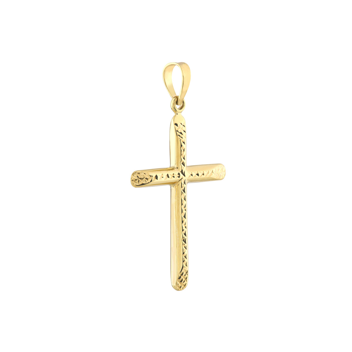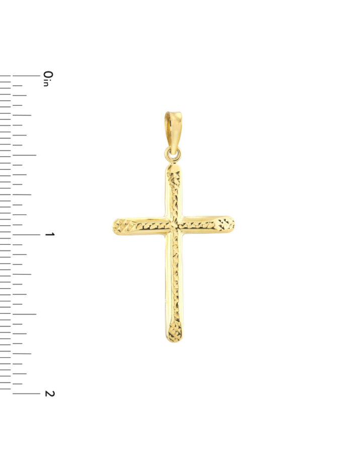 Shine bright with this radiant 20.30mm Diamond Cut Center Cross pendant. Crafted from luxurious 10K yellow gold, its diamond cut design catches the light beautifully. This eye-catching pendant is perfect for adding a touch of elegance to any chain.