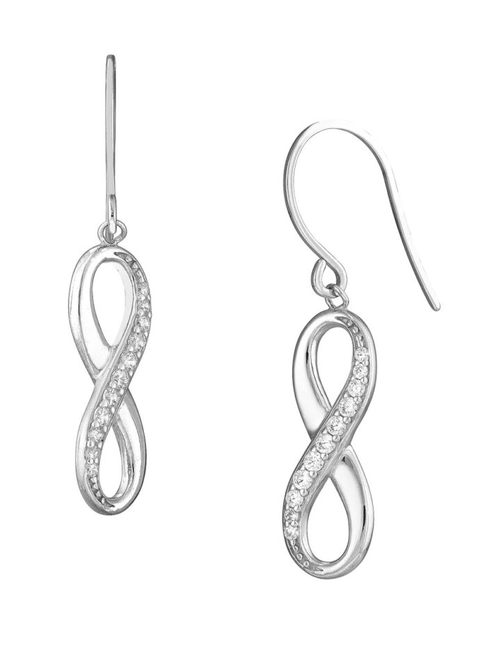 Adorn your ears with the timeless elegance of the CZ Infinity Dangle Earrings. These exquisite earrings feature a sparkling half-CZ infinity symbol, crafted from sterling silver and plated in your choice of rhodium, yellow gold, or rose gold. The delicate fish hook closures ensure a secure and comfortable fit. Whether you’re dressing up for a special occasion or adding a touch of sparkle to your everyday look, these earrings are sure to turn heads.