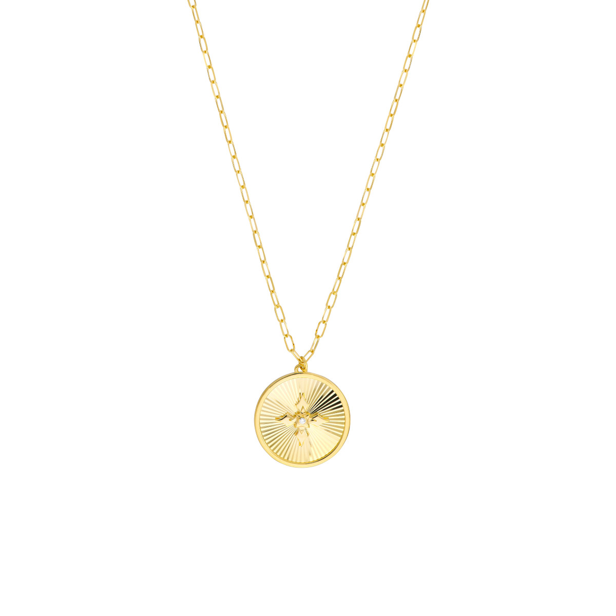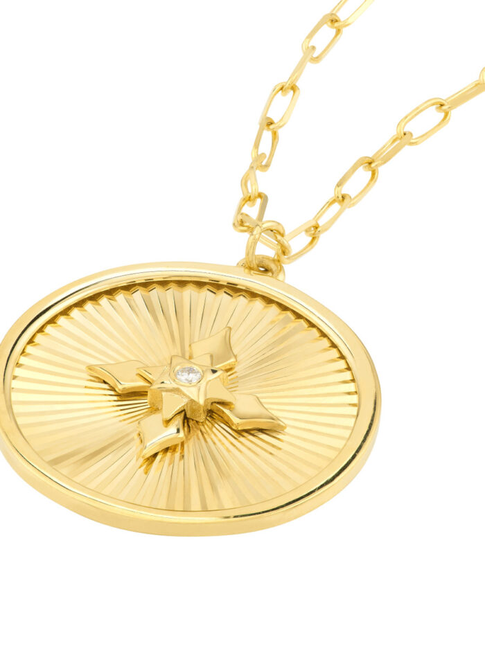 Embrace timeless elegance with this stunning 14K yellow gold cross medallion necklace. Adorned with a sparkling diamond accent, this piece exudes sophistication and grace. The intricate cross design is a symbol of faith and devotion, making it a meaningful and cherished addition to your jewelry collection. The necklace features a secure lobster closure and a classic box chain, adding to its timeless appeal.