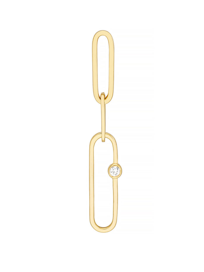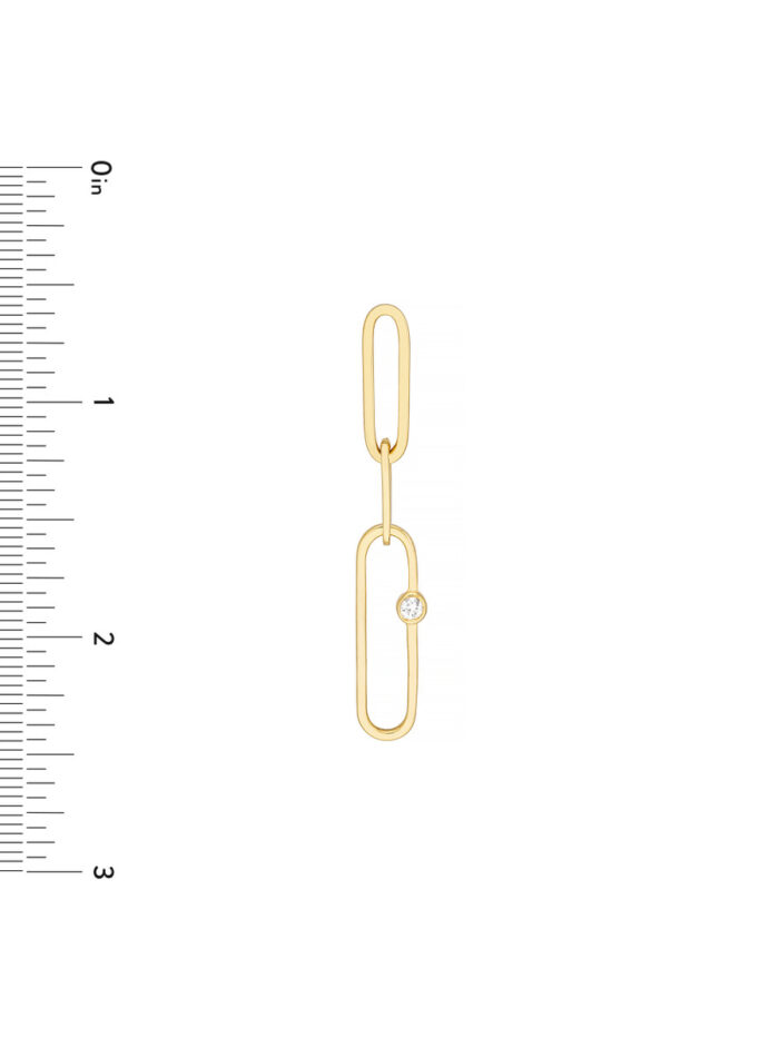 Elevate your everyday look with these stunning Diamond Accent Paperclip Dangle Earrings. Crafted from gleaming 14K yellow gold, these earrings feature a delicate paperclip design adorned with sparkling diamonds. The classic post and nut closure ensures a secure and comfortable fit. Add a touch of timeless elegance to any outfit with these eye-catching earrings.