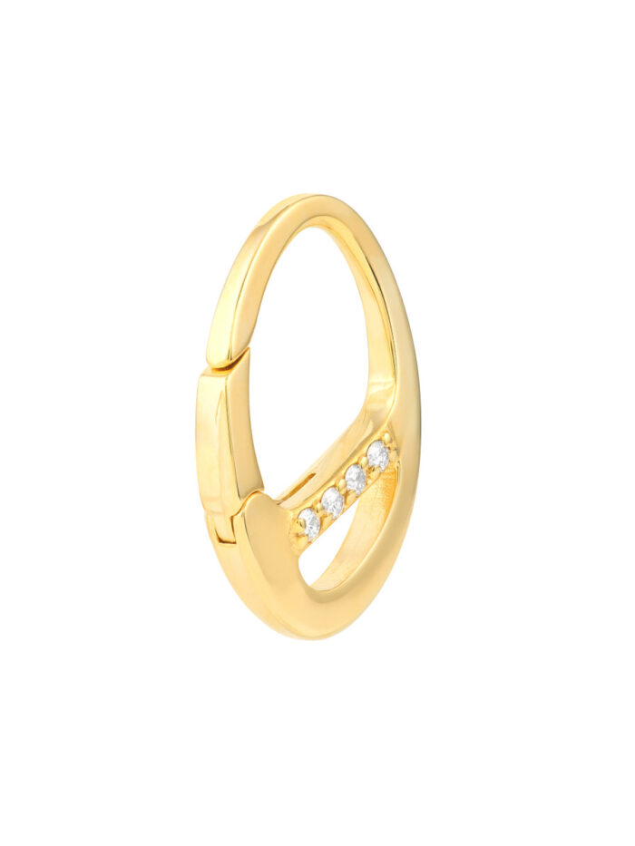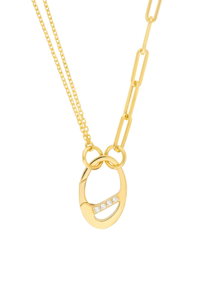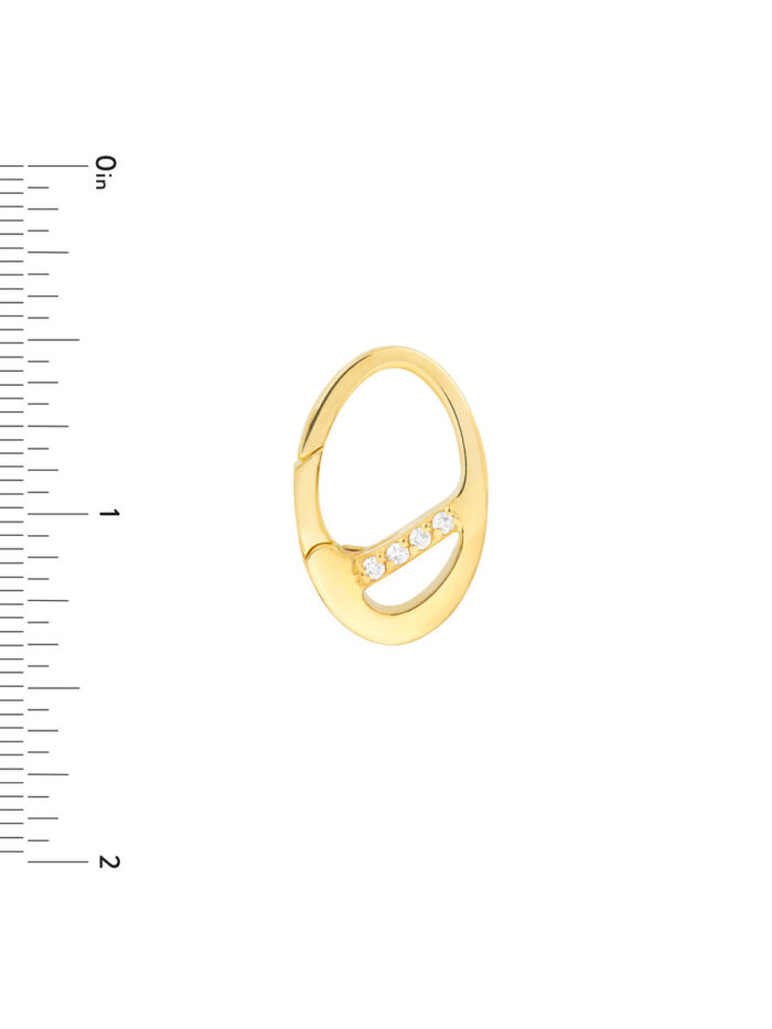 Add a touch of timeless elegance to your jewelry collection with the Diamond Accented Oval Push Lock. Crafted from gleaming 14K yellow gold, this piece features delicate diamond accents and a secure push lock closure. It’s a versatile accent piece that complements a variety of chain styles, adding a touch of sparkle to any look.