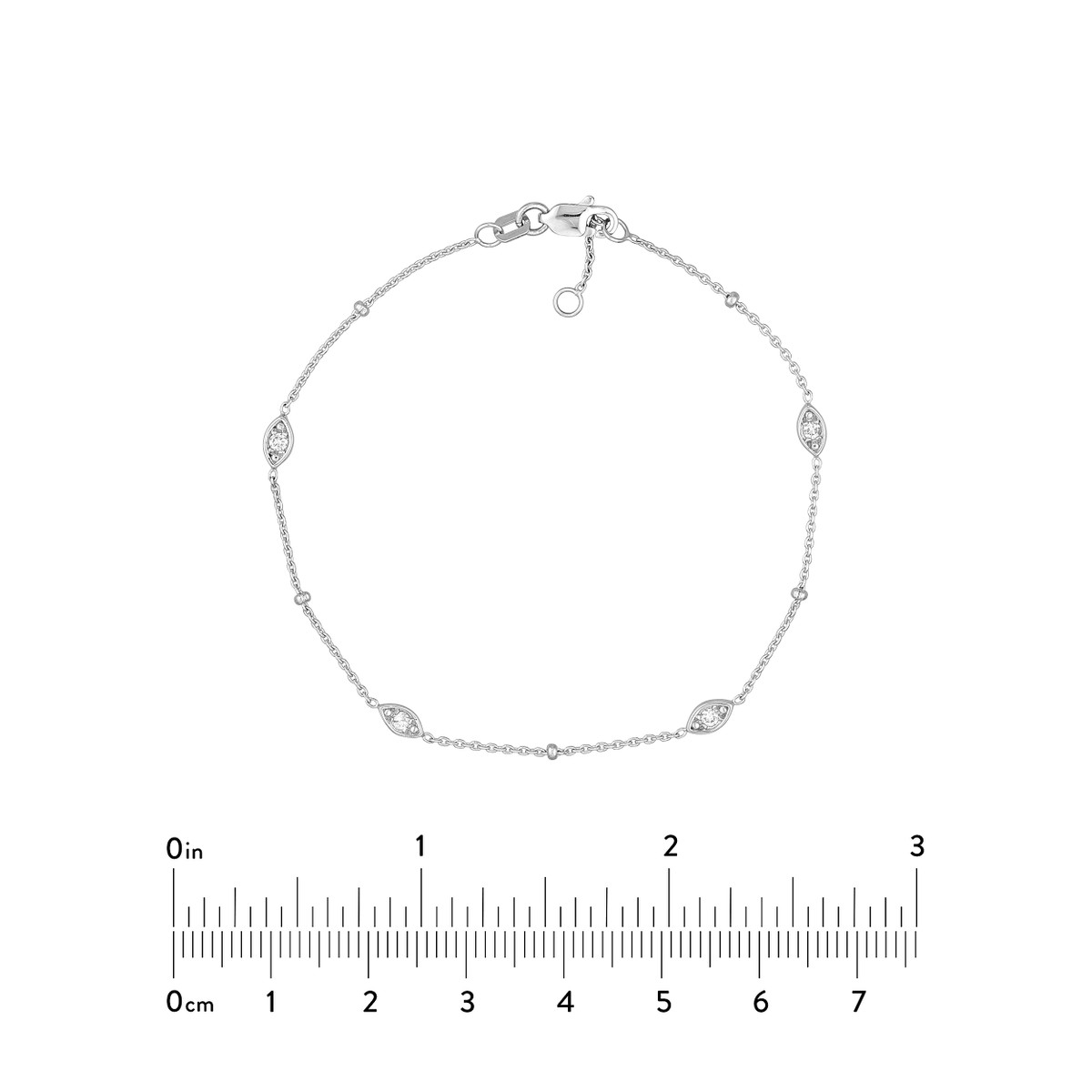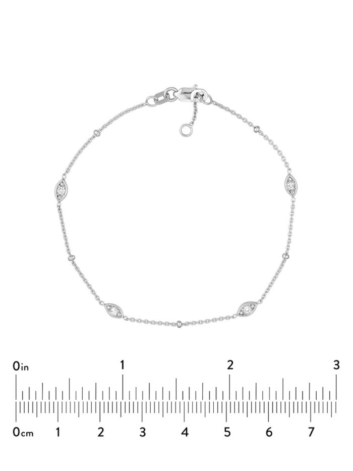 Discover sophisticated style with this elegant diamond bracelet. Crafted in lustrous 14K white gold, this adjustable bracelet showcases 1/8ctw of diamonds set in a captivating marquise bezel and bead station design. The secure lobster clasp ensures a comfortable and confident fit. The cable chain adds a touch of timeless elegance to this enduring piece.