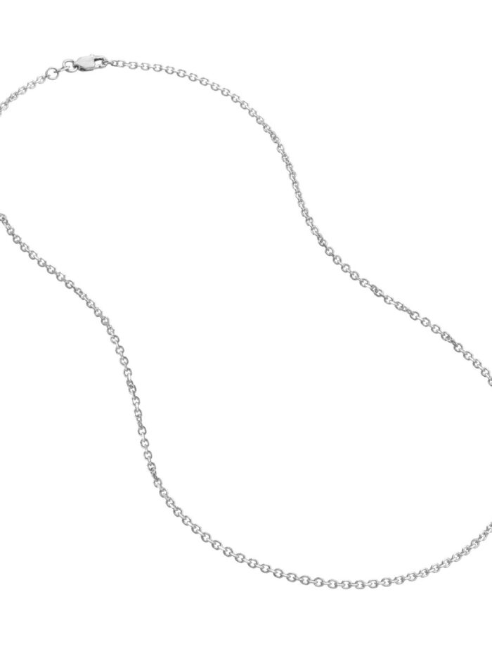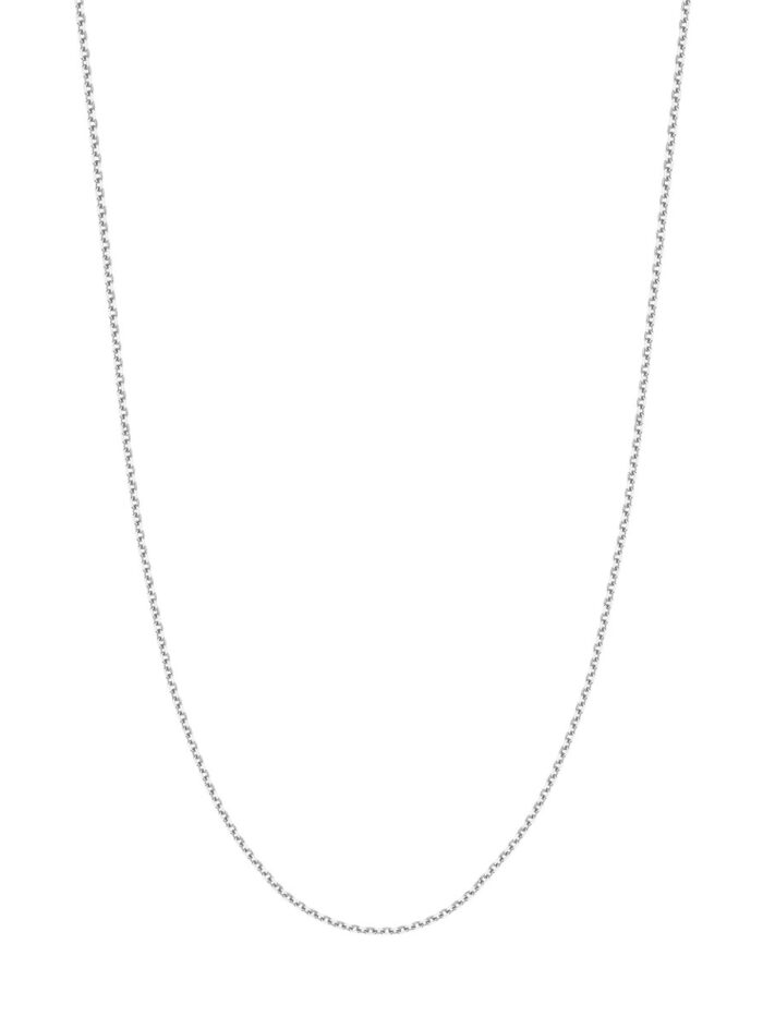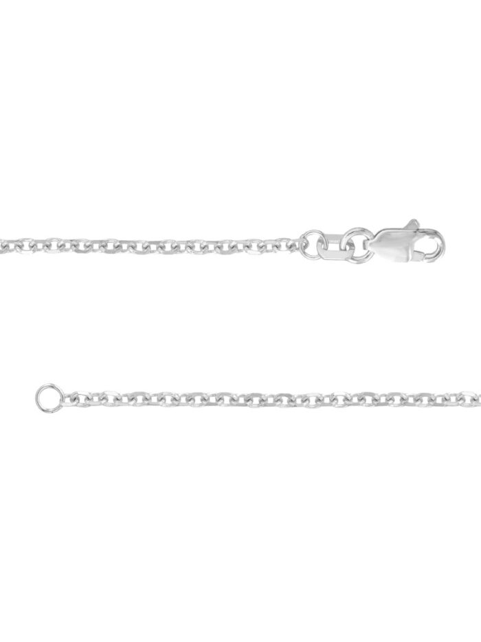 Add a touch of modern glamour to your look with this 1.8mm diamond-cut cable chain in lustrous 14K white gold. The sleek design and shimmering diamond-cut finish create a timeless piece that effortlessly elevates any outfit.