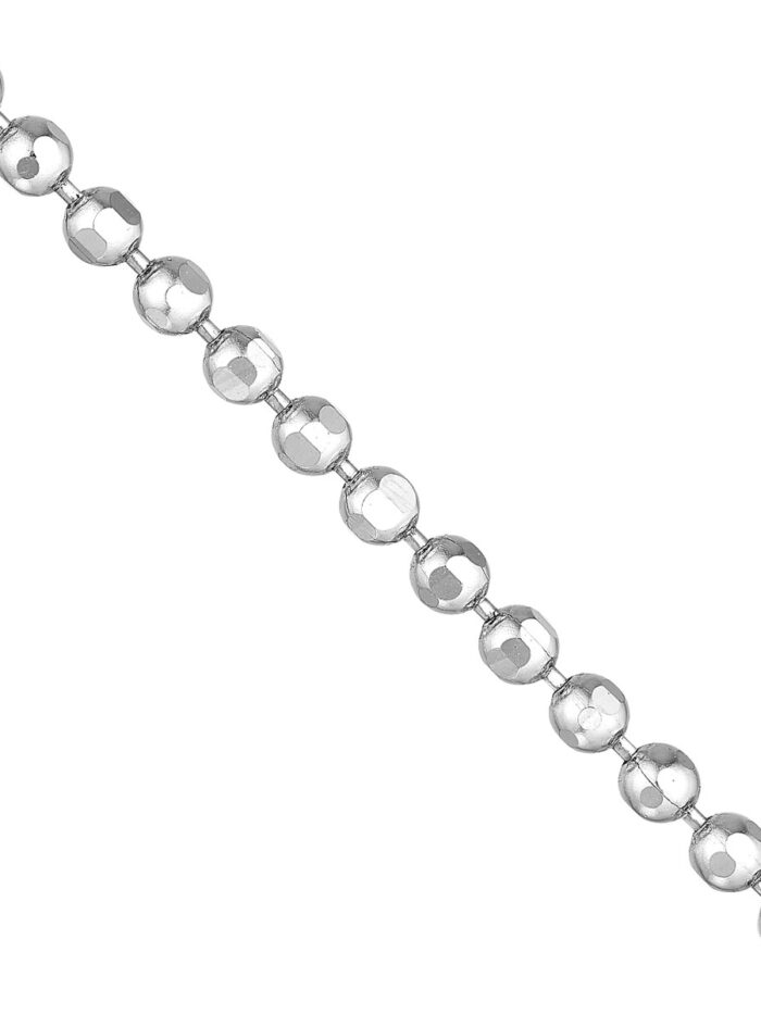 Add a touch of sparkle to your everyday style with the Diamond-Cut Bead Choker Chain. Crafted from lustrous 14K white gold, this delicate chain features intricately faceted diamond-cut beads that catch the light with every move. The adjustable length (13-16 inches) ensures a perfect fit, while the secure lobster clasp closure provides peace of mind.