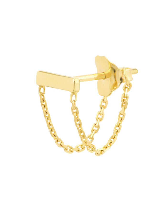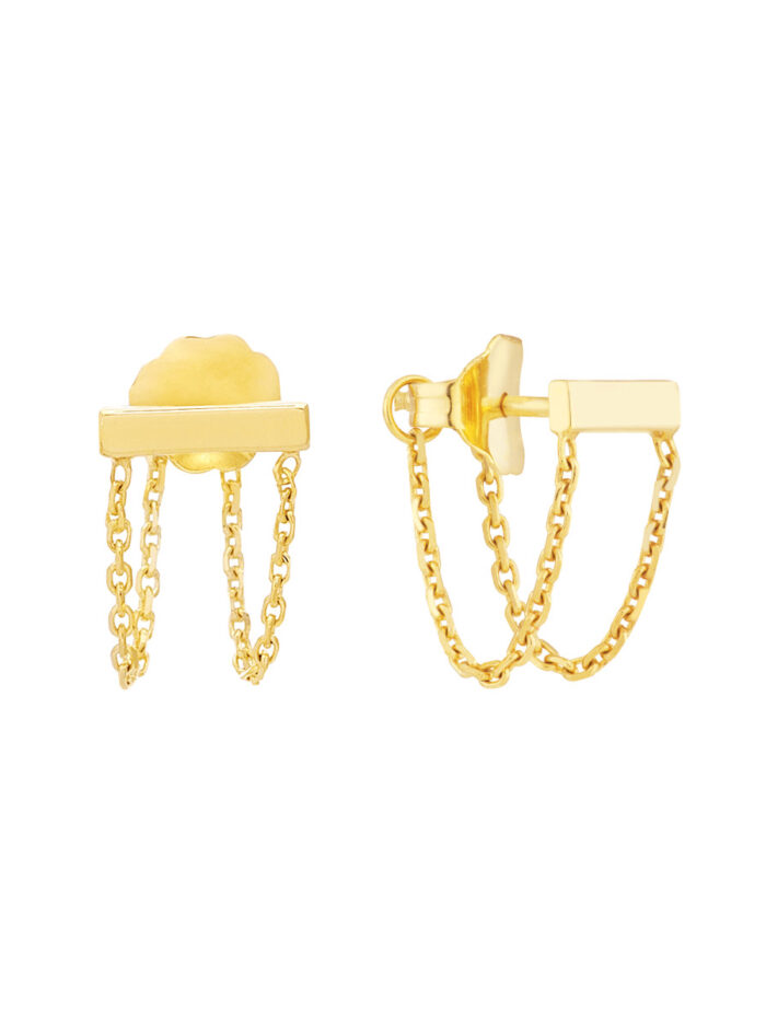 These stylish Diamond-Cut Cable Chain Bar Earrings are crafted in 14K yellow gold, highlighting the brilliance of the meticulous diamond-cut finish. The two strands of cable chain create a sophisticated look, while the bar design adds a modern touch.