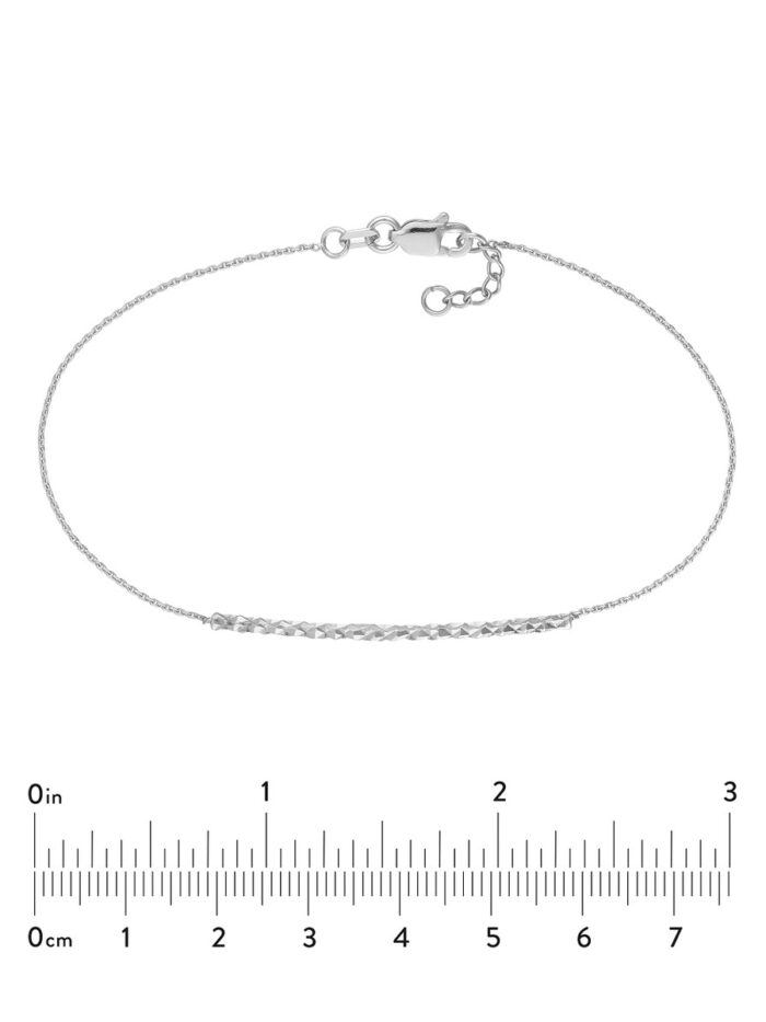 Embrace a touch of modern elegance with this stunning diamond-cut curved bar bracelet. Crafted from lustrous 14K white gold, the delicate curves catch the light beautifully, adding a touch of sparkle to your everyday look. The cable chain is both strong and stylish, ensuring this bracelet will be a treasured accessory for years to come. Adjustable to fit your wrist perfectly, this bracelet is the perfect way to elevate any outfit.