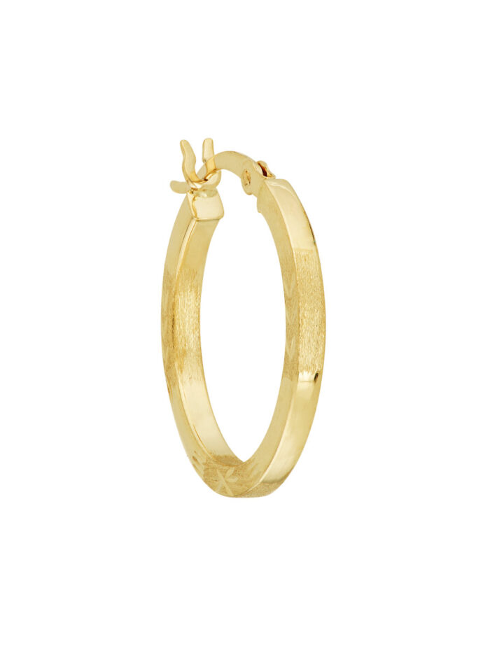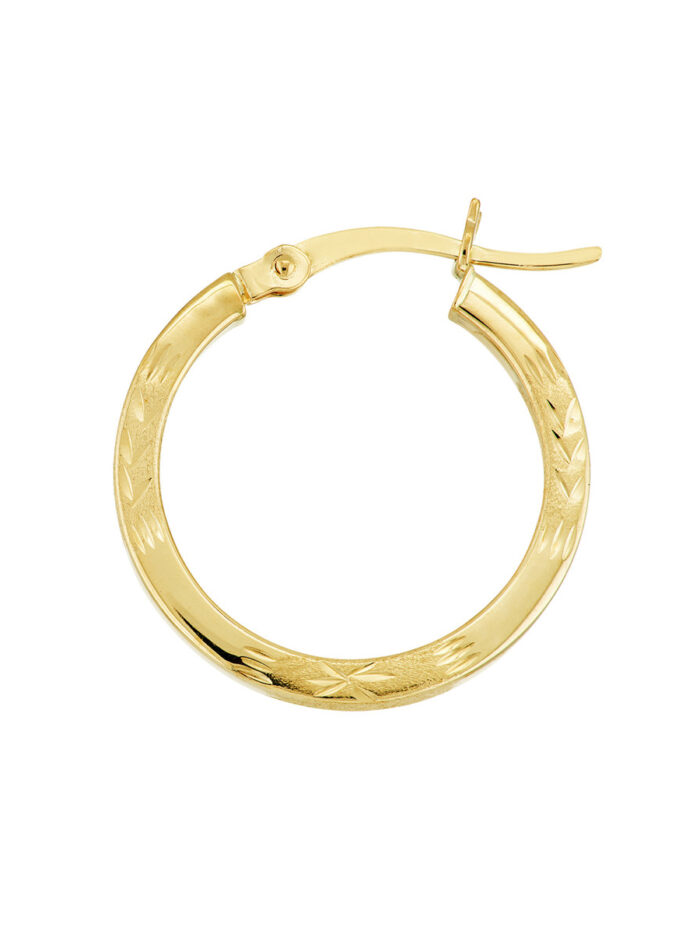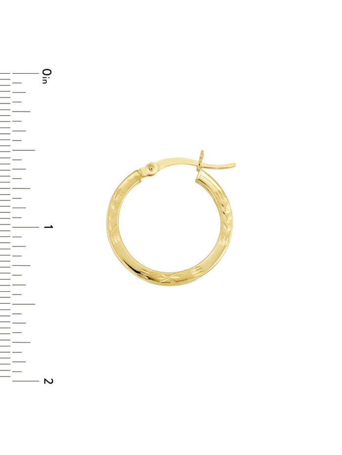 Embrace timeless elegance with these exquisite diamond-cut Florentine hoop earrings. Crafted from lustrous 14K yellow gold, these earrings feature the intricate Florentine design, adding a touch of sophistication to your look. Measuring 20mm in diameter and 2mm in width, these hoops are versatile enough for both casual and formal occasions. The secure hinge closure ensures comfortable wear throughout the day.
