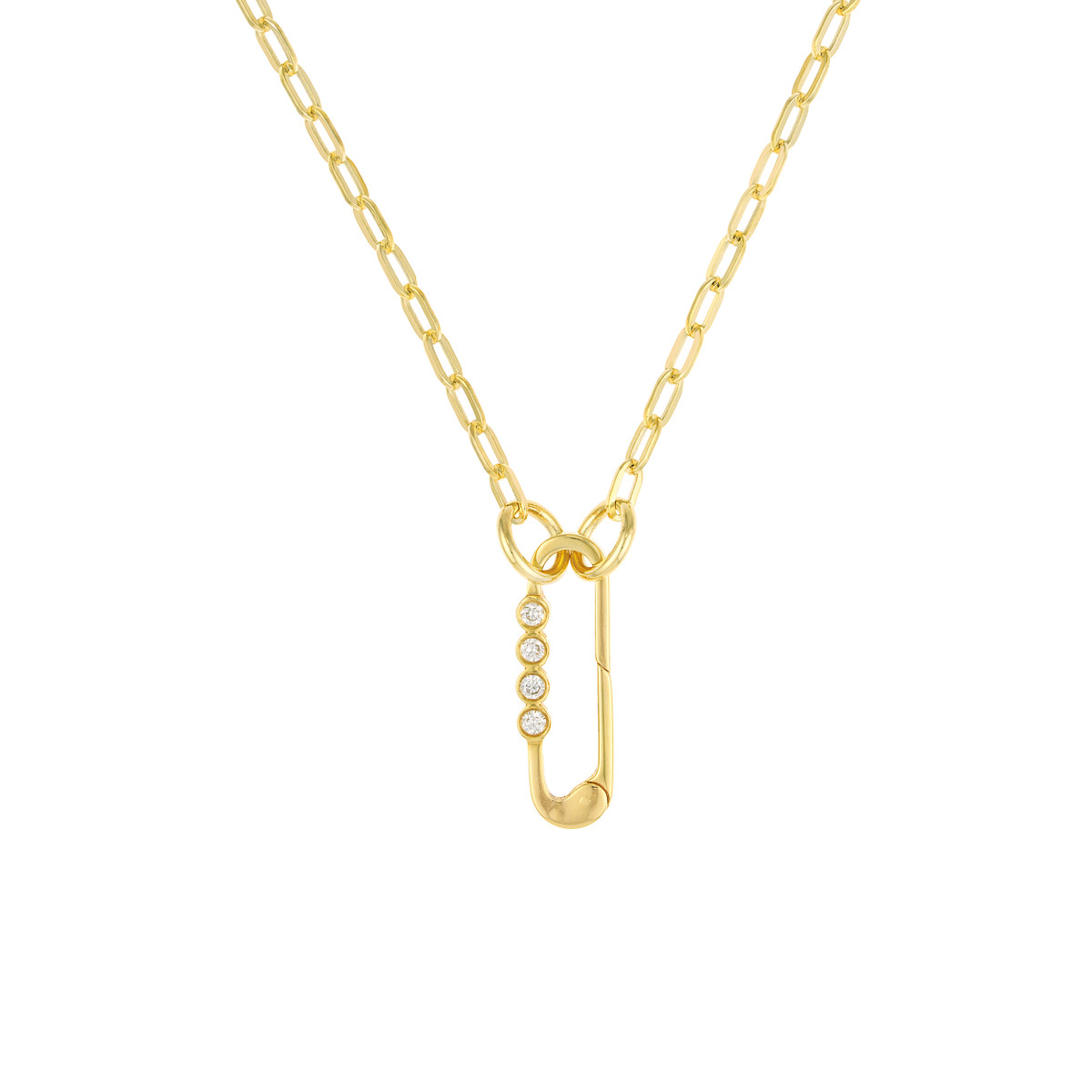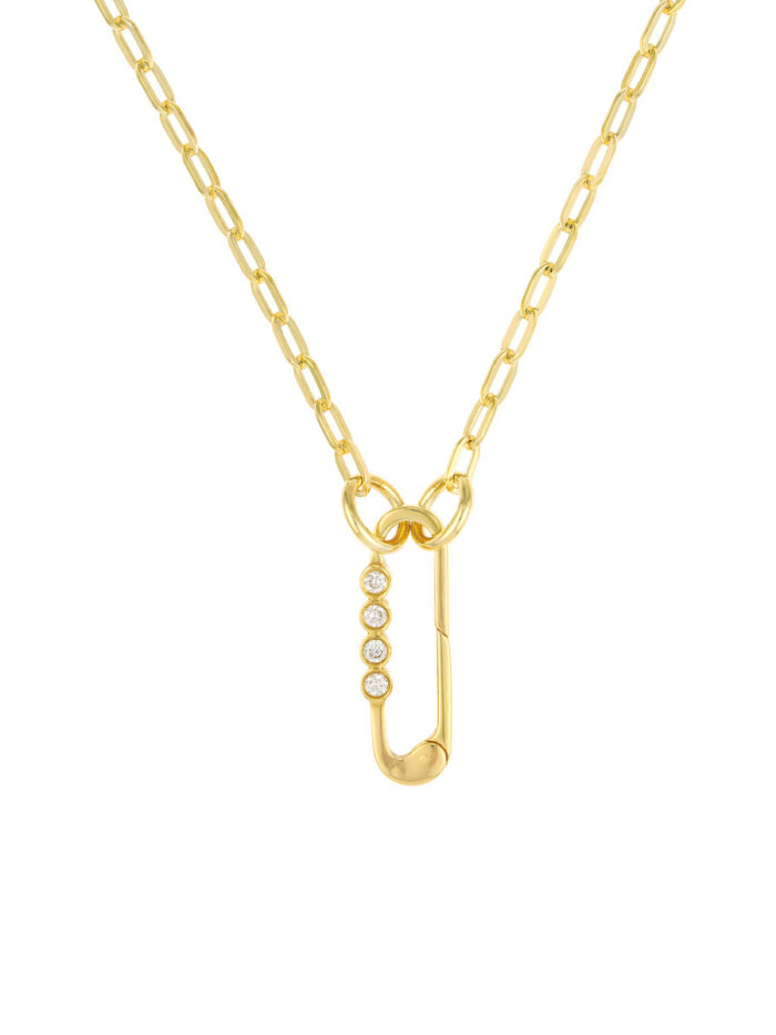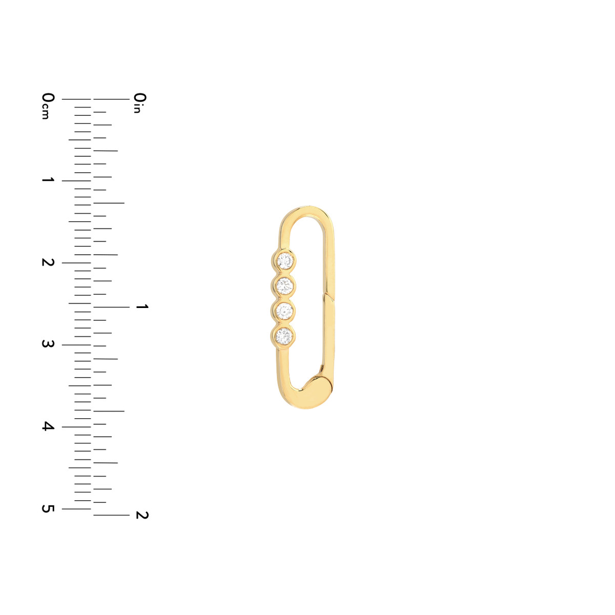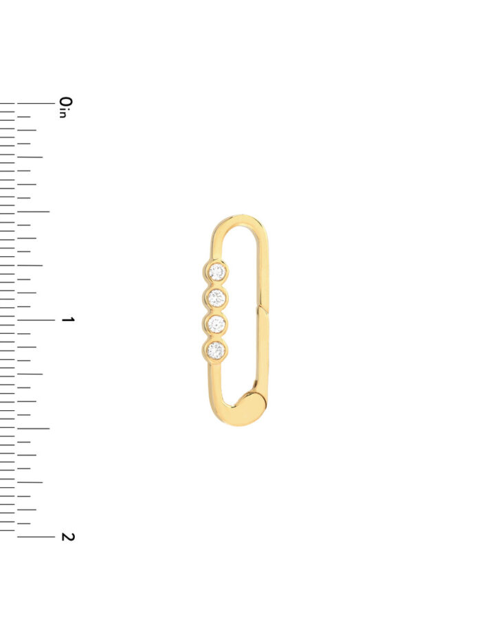 Make a statement with this dazzling Diamond Designer Quartet Push Clasp, crafted in 14K Yellow Gold. Featuring a quartet of sparkling diamonds, this piece exudes elegance and sophistication. The secure push lock closure ensures comfortable wear.