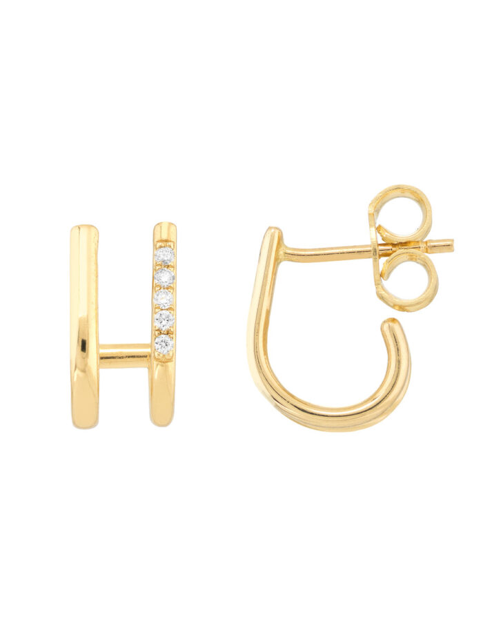 These dazzling Diamond Double J Hoop Earrings are crafted from lustrous 14K yellow gold, making a statement with their classic design and sparkling diamond accents. The double J hoop shape adds a touch of modern elegance, perfect for everyday wear or special occasions.