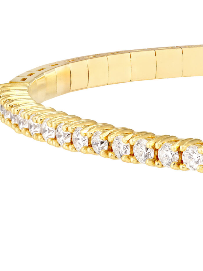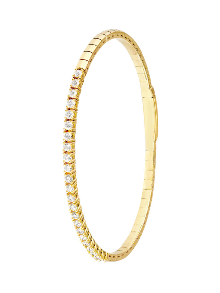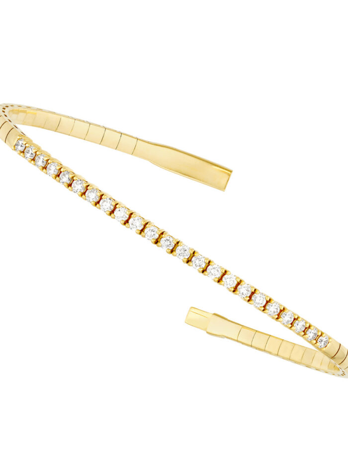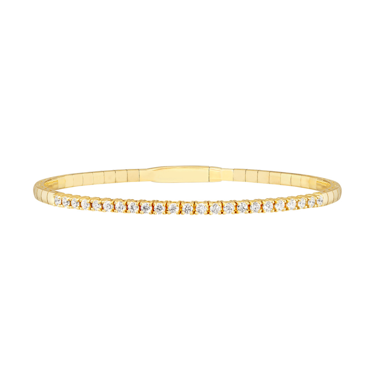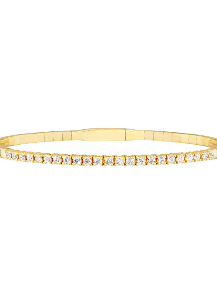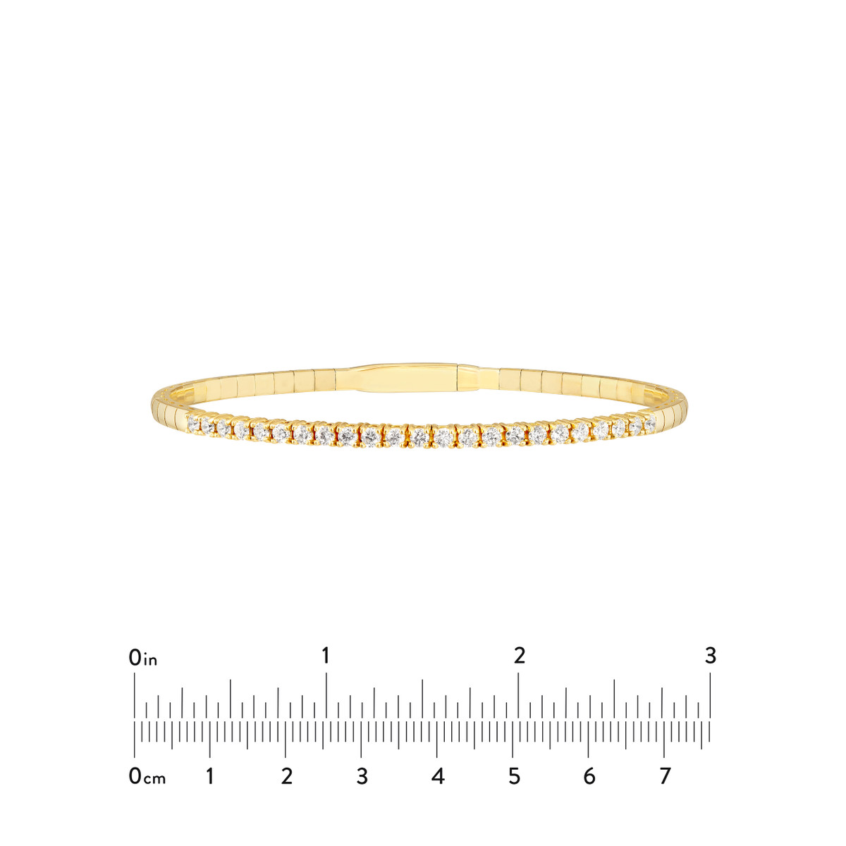 Elevate your wrist game with this stunning Diamond Flexi Tennis Bangle from our Tennis collection. Crafted from luxurious 14K Yellow Gold, this bangle features a dazzling array of diamonds that sparkle with every movement. Its flexible design ensures a comfortable fit, while the secure box lock closure keeps it safely in place. This timeless piece is perfect for adding a touch of elegance to any occasion.