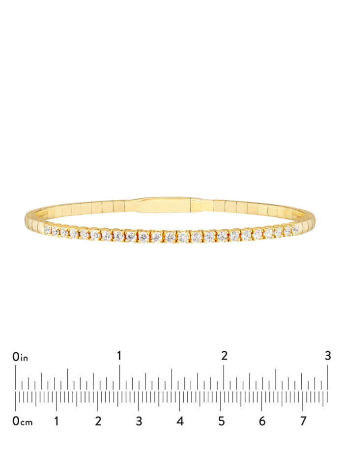 Elevate your wrist game with this stunning Diamond Flexi Tennis Bangle from our Tennis collection. Crafted from luxurious 14K Yellow Gold, this bangle features a dazzling array of diamonds that sparkle with every movement. Its flexible design ensures a comfortable fit, while the secure box lock closure keeps it safely in place. This timeless piece is perfect for adding a touch of elegance to any occasion.