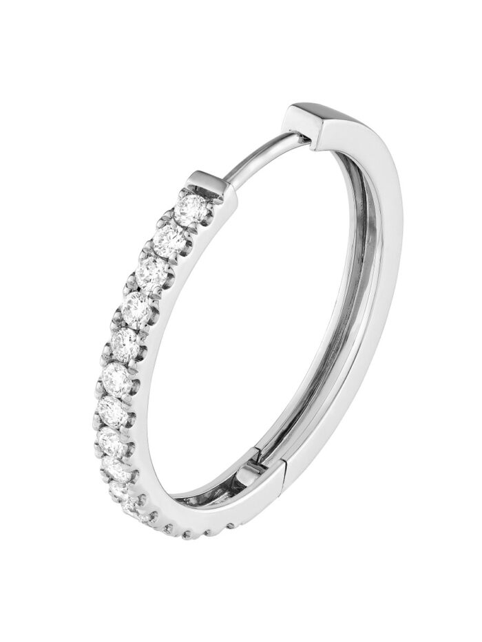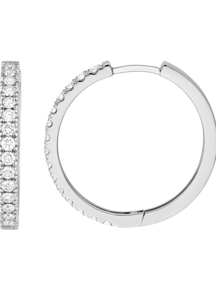 Add a touch of sparkle to your everyday look with these dazzling diamond hoop earrings. Featuring 7/8 carat total weight of sparkling 2mm diamonds, these lightweight hoops are crafted in luxurious 14K white gold. Their 25mm diameter makes a statement without overwhelming, perfect for any occasion. The secure hinge closure ensures they stay in place all day long.