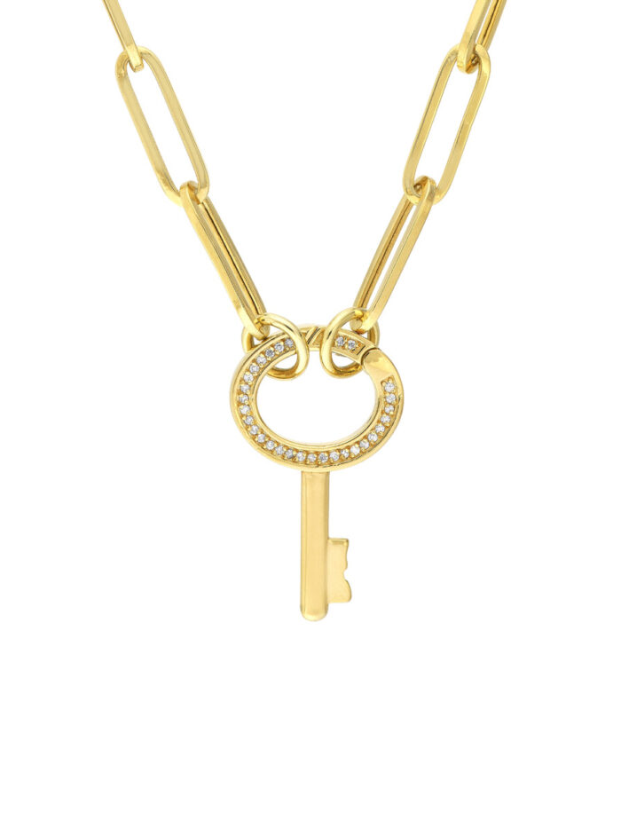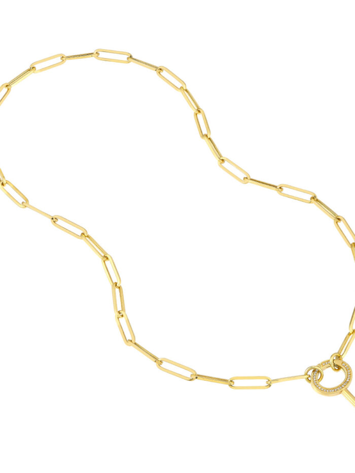 Diamond Oval Key Push Lock – 14K Yellow Gold – by Dazyle