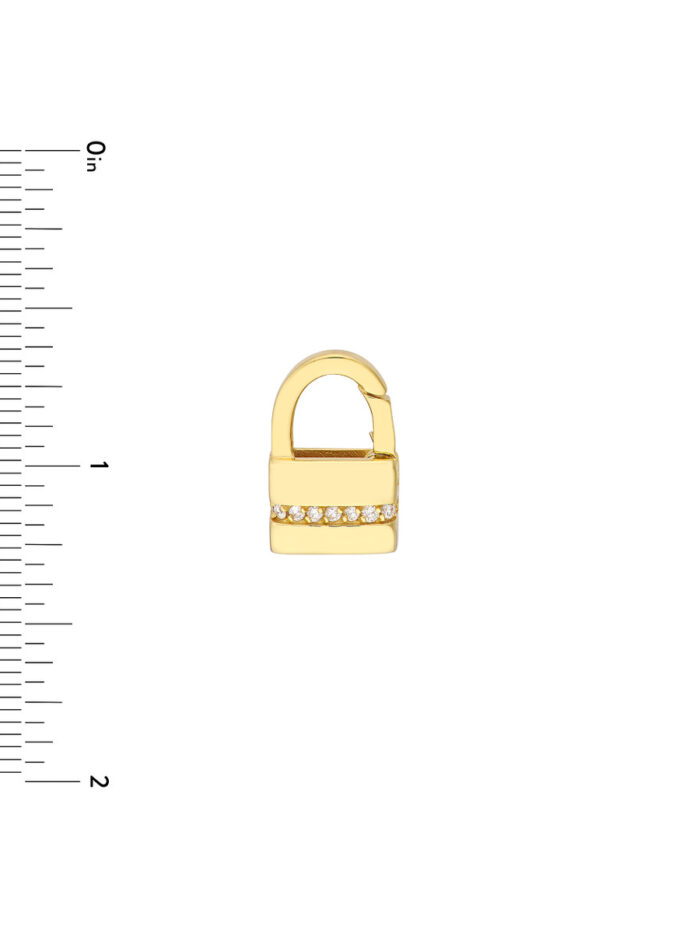 Add a touch of sparkle to your look with the Diamond Padlock. Featuring 1/10tcw diamonds, this eye-catching padlock is designed to elevate any chain. Crafted from lustrous 14K yellow gold, it secures effortlessly with its dependable closure. This stunning piece is perfect for adding a touch of luxury to your everyday style.