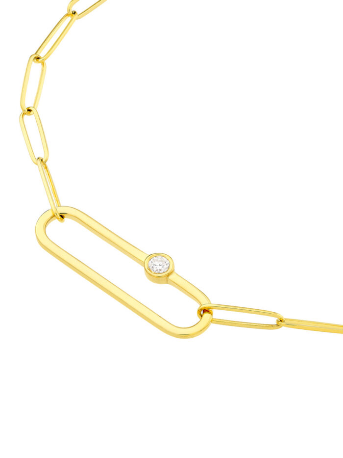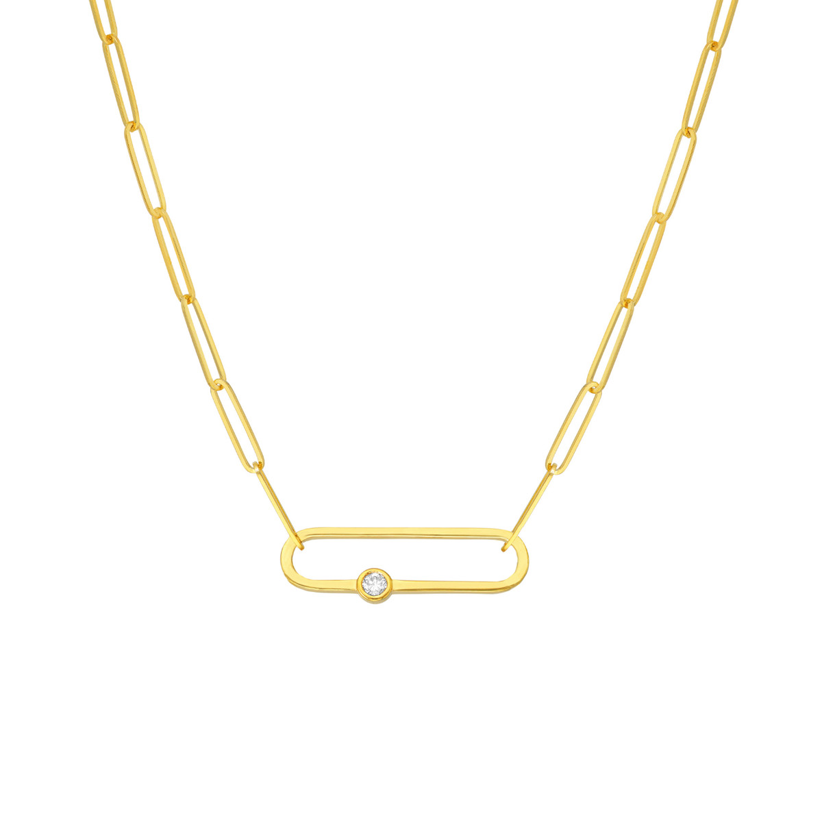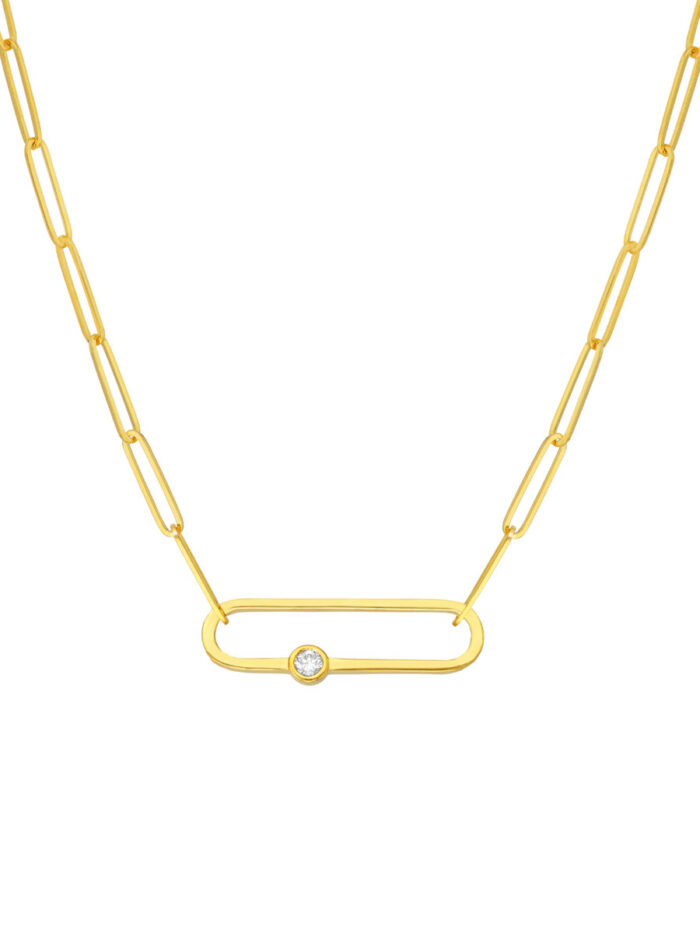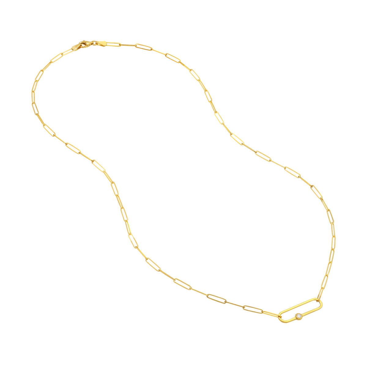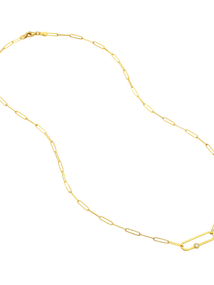 Elevate your everyday style with this beautiful Diamond Paper Clip Necklace. Crafted in 14K yellow gold, the necklace features a classic paper clip chain subtly accented with a sparkling diamond. This versatile piece is perfect for layering or wearing solo, adding a touch of elegance to any outfit.