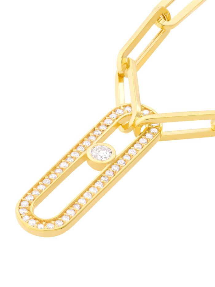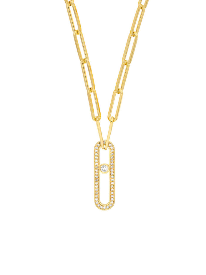 Make a dazzling statement with this Diamond Pave Link Paper Clip Necklace. Crafted from lustrous 14K yellow gold, this necklace features a modern paper clip chain design accented with pave diamonds that shimmer and catch the light. The 20.5-inch length provides a versatile look, making it perfect for layering or wearing solo.