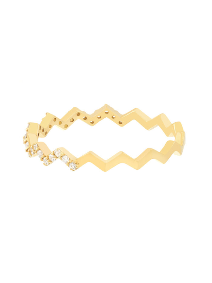 Make a bold statement with the Diamond Polished Zig Zag Ring. Crafted from luxurious 14K yellow gold, this eye-catching ring features a unique zig zag design accented with sparkling diamonds. The polished finish adds a touch of refinement, making it perfect for both everyday wear and special occasions. This versatile ring is ideal for those who appreciate modern and unique designs.