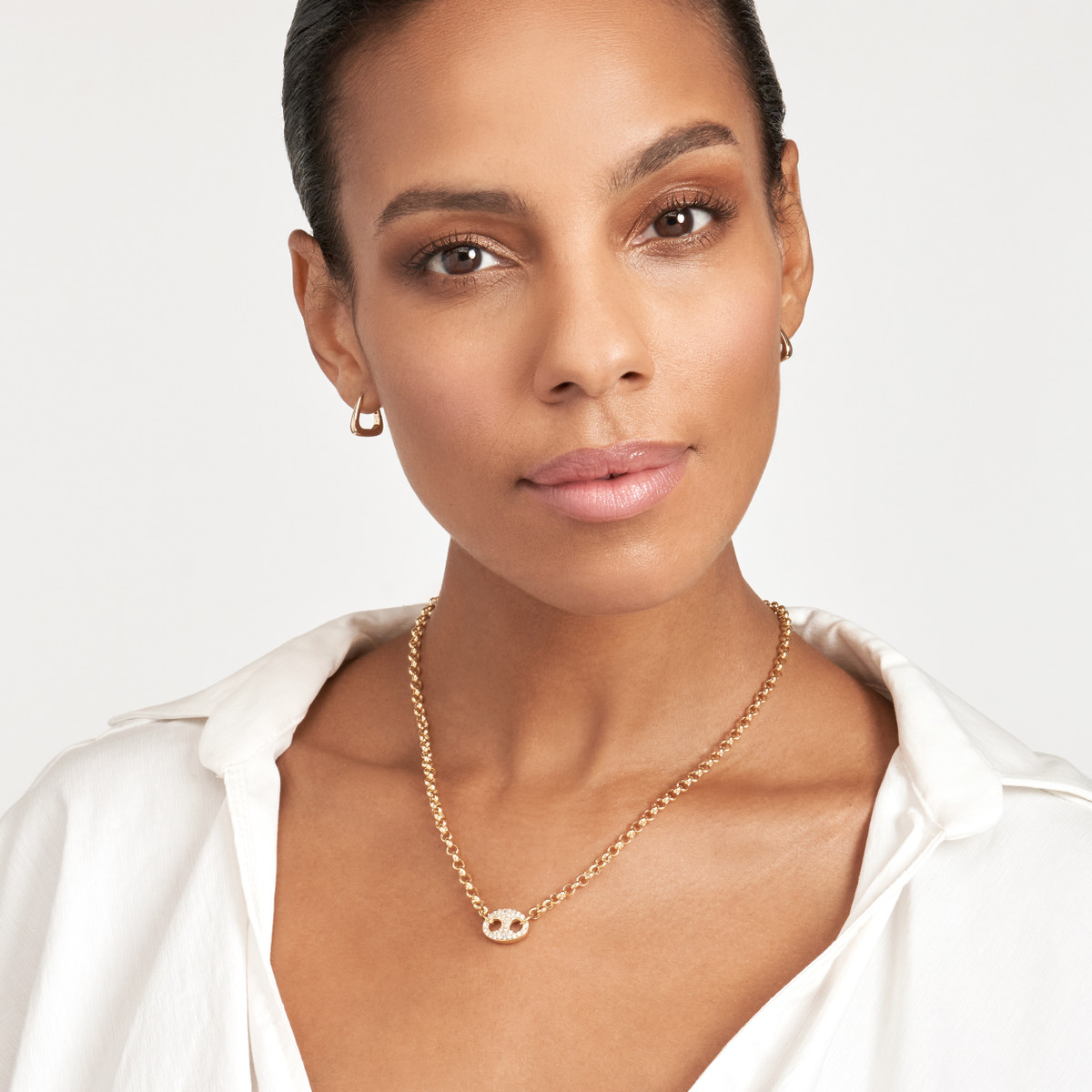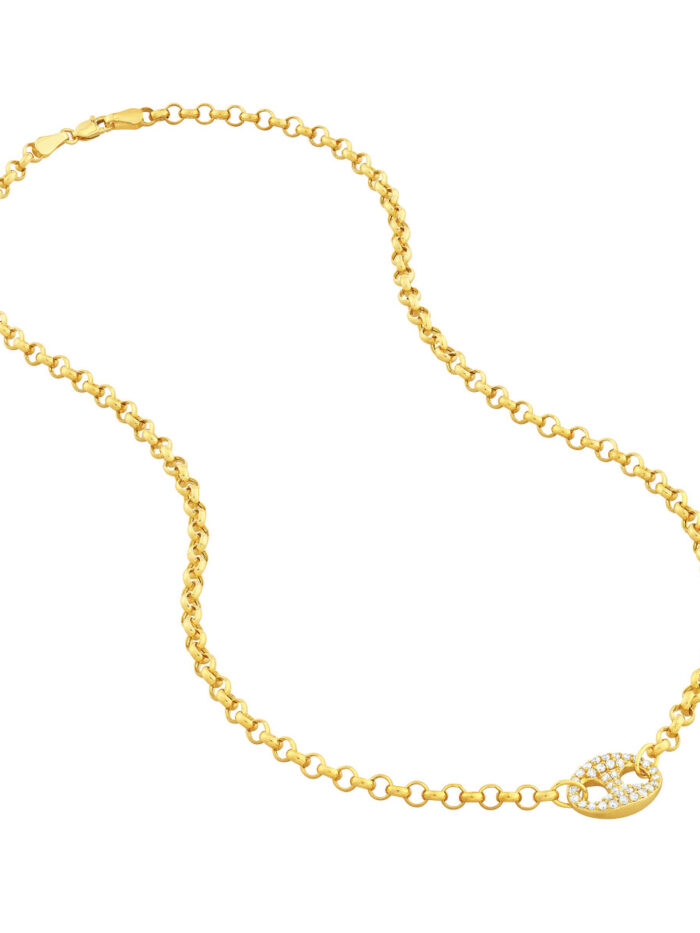 Shine bright with the Diamond Puff Link Rolo Necklace. Crafted in 14K yellow gold, this necklace features a stunning puff mariner element adorned with 1/2tcw diamonds. The necklace is suspended on a sleek rolo chain, adding an elegant touch to any look. The lobster clasp closure ensures a secure and comfortable fit.
