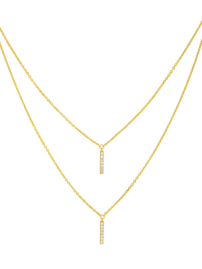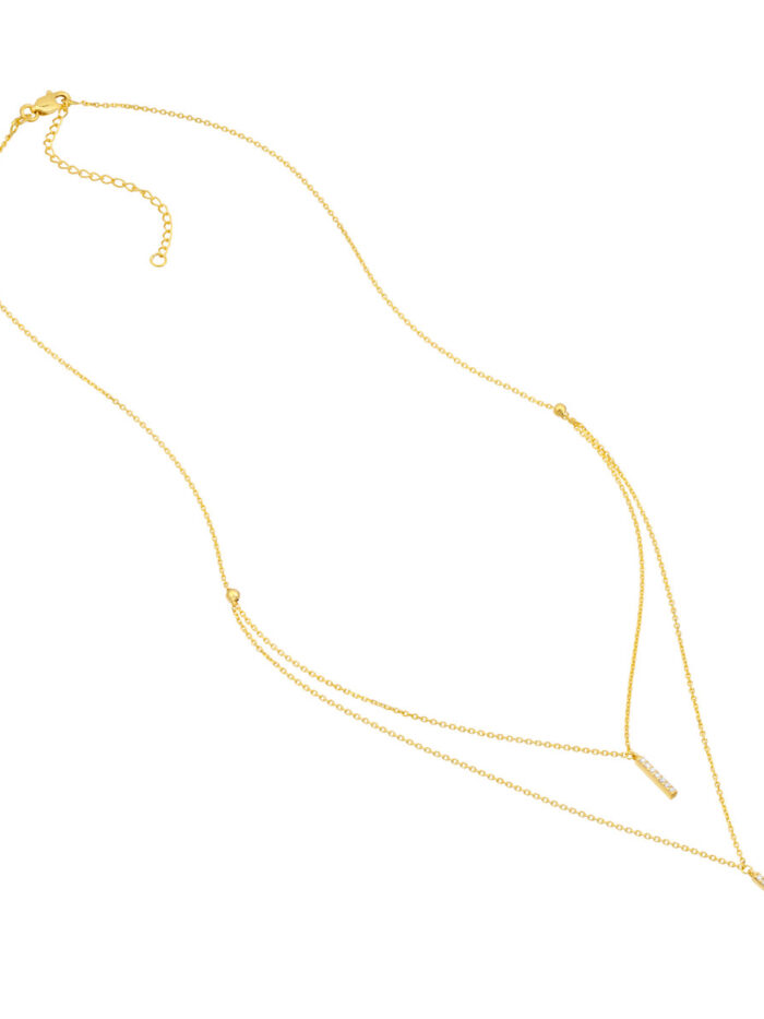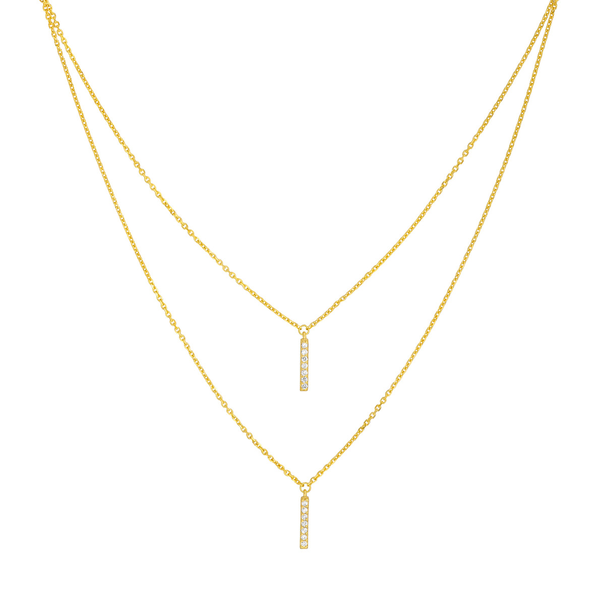Effortlessly elevate your style with this chic pre-layered diamond staple bar necklace. Crafted from 14K yellow gold, this necklace features two delicate bar pendants adorned with sparkling diamonds. The cable chain adds a touch of sophistication, while the adjustable length allows for a personalized fit. Layered necklaces provide a fashion-forward, unique look. This pre-layered necklace does the work for you.