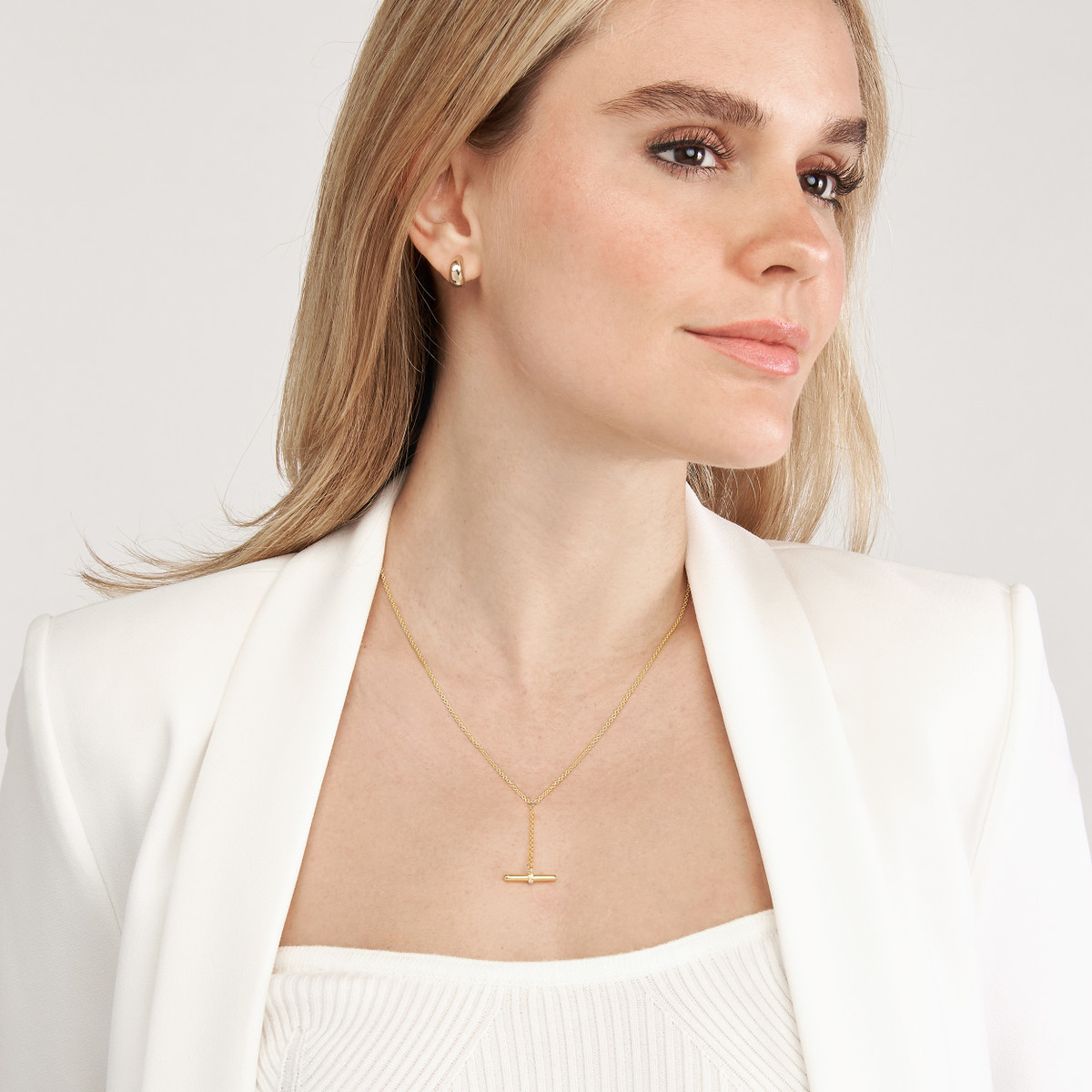 This timeless Diamond Toggle Lariat Necklace is crafted from lustrous 14K yellow gold and features a sparkling 1/15tcw diamond toggle accent. The adjustable length allows for versatile styling, whether you prefer a choker look or a longer, more dramatic drape. This necklace is perfect for adding a touch of elegance to any outfit, making it a perfect choice for special occasions or everyday wear.