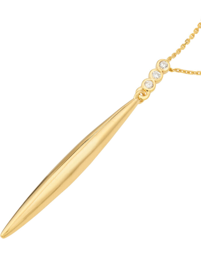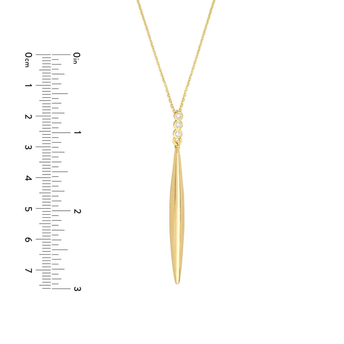 Elevate your everyday style with this exquisite diamond trio bombe marquis drop necklace. Crafted in lustrous 14K yellow gold, this necklace features a trio of sparkling 1/20tcw diamonds set in a bezel setting, adding a touch of timeless elegance. The elegant bombe marquis pendant dangles gracefully, catching the light with every movement.